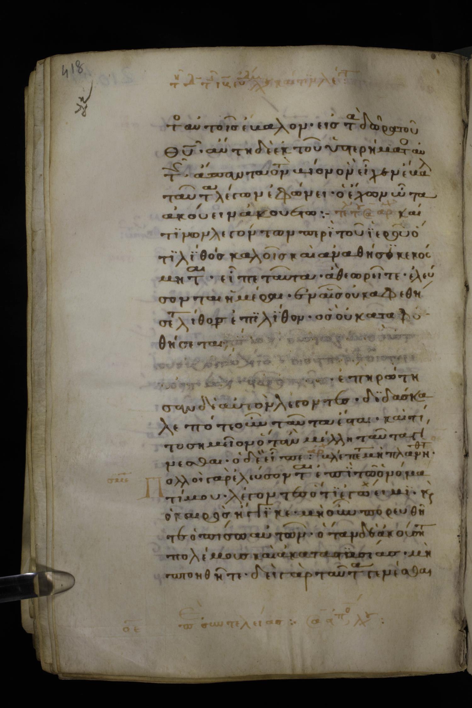 Thirteenth century minuscule of the Gospels on parchment; 298 leaves, 1 column, 22-24 lines per column. Images were taken at the National Library of Greece in Athens.