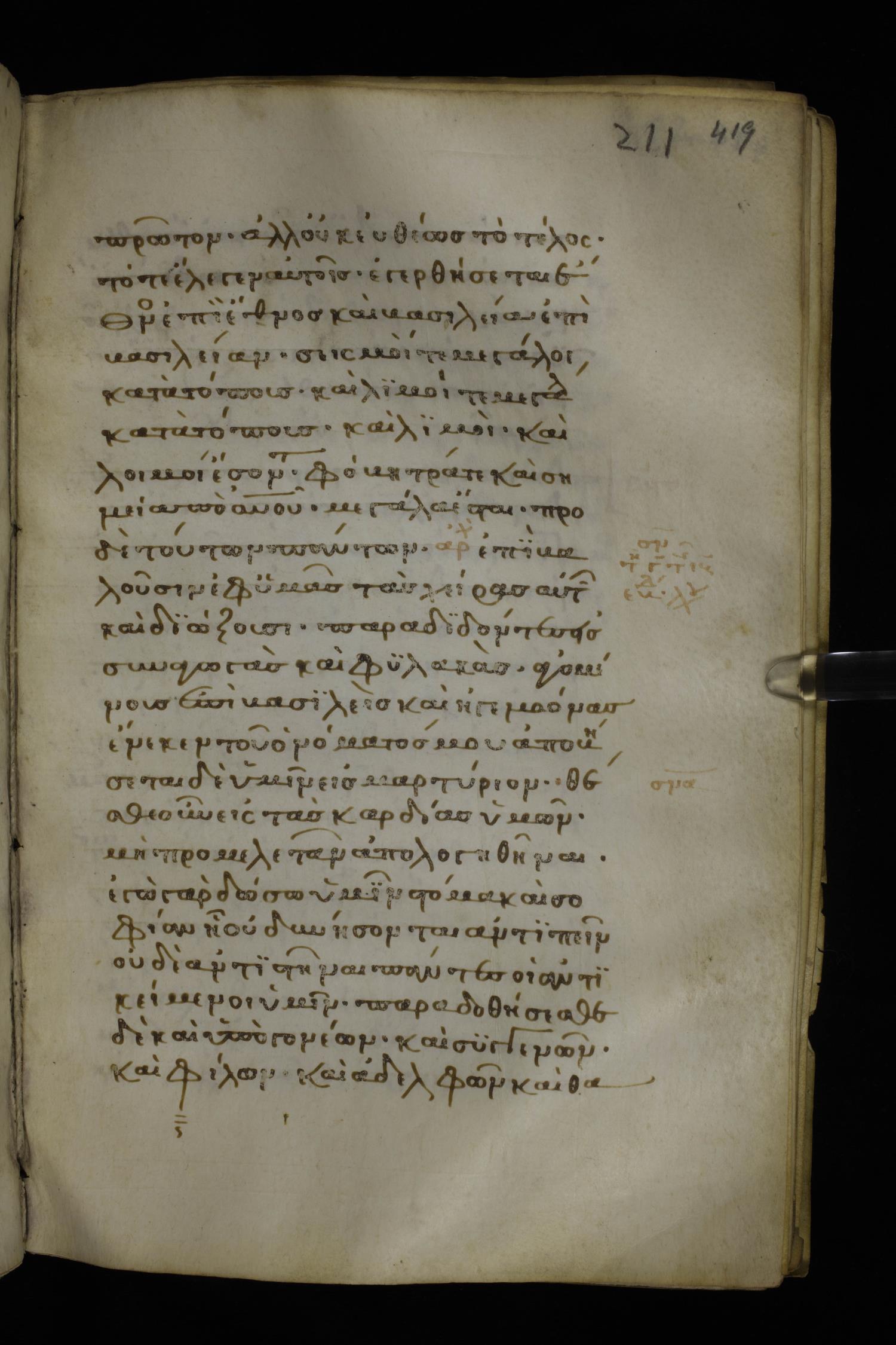 Thirteenth century minuscule of the Gospels on parchment; 298 leaves, 1 column, 22-24 lines per column. Images were taken at the National Library of Greece in Athens.