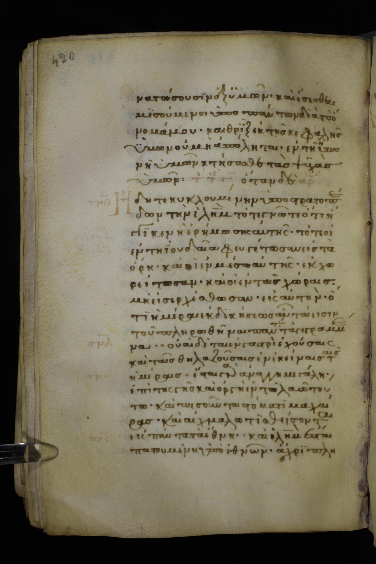 Thirteenth century minuscule of the Gospels on parchment; 298 leaves, 1 column, 22-24 lines per column. Images were taken at the National Library of Greece in Athens.