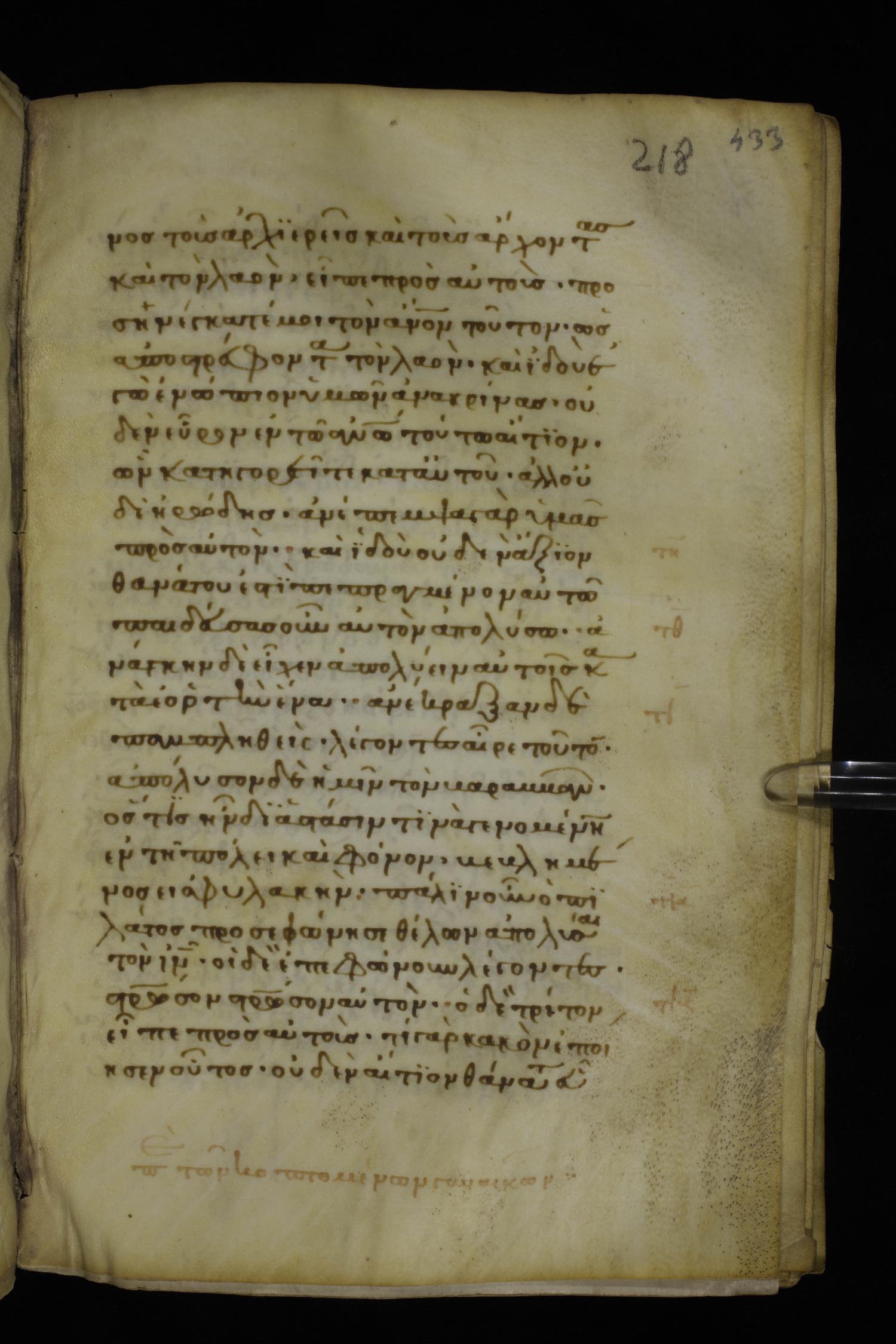 Thirteenth century minuscule of the Gospels on parchment; 298 leaves, 1 column, 22-24 lines per column. Images were taken at the National Library of Greece in Athens.