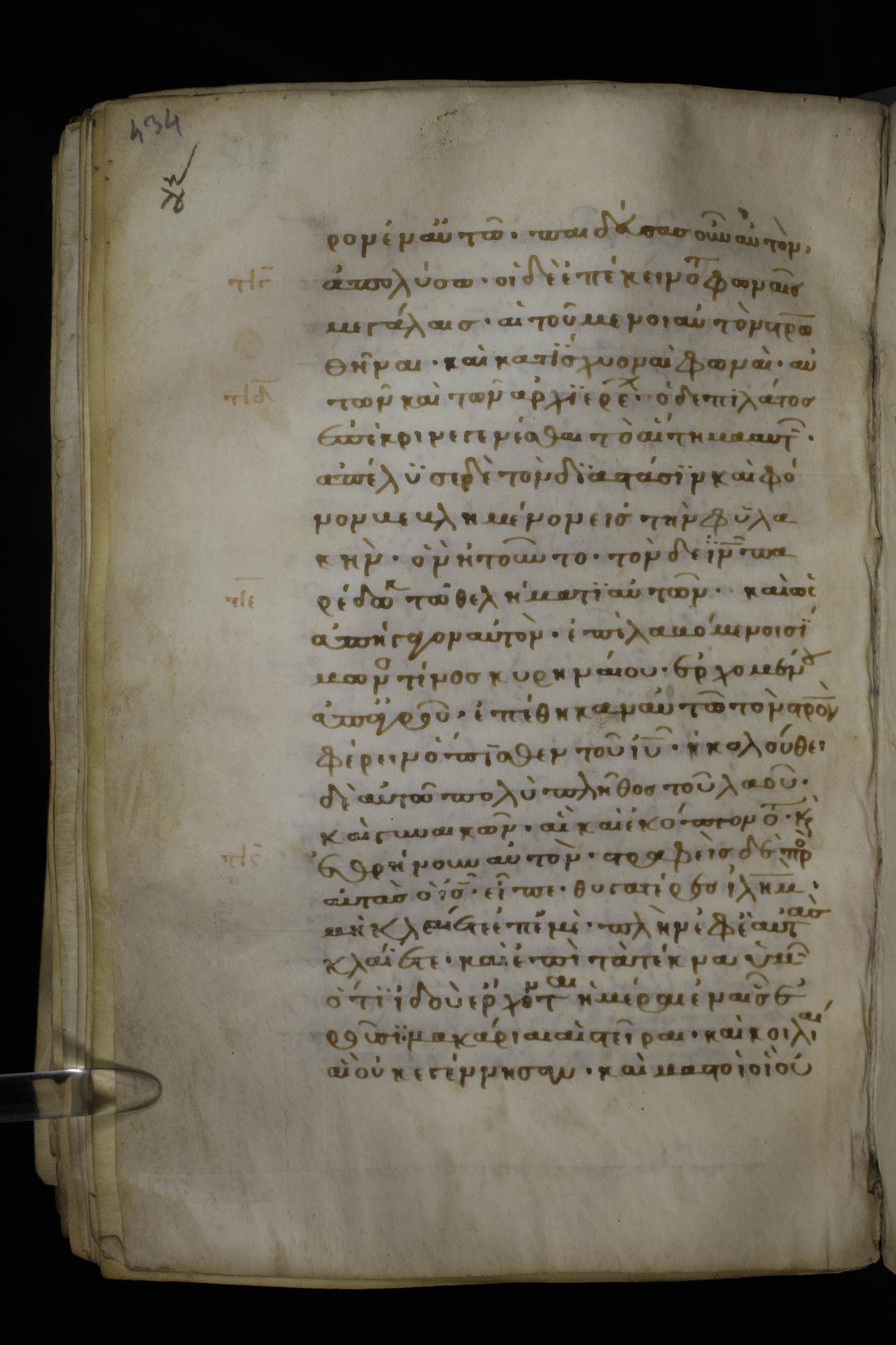Thirteenth century minuscule of the Gospels on parchment; 298 leaves, 1 column, 22-24 lines per column. Images were taken at the National Library of Greece in Athens.