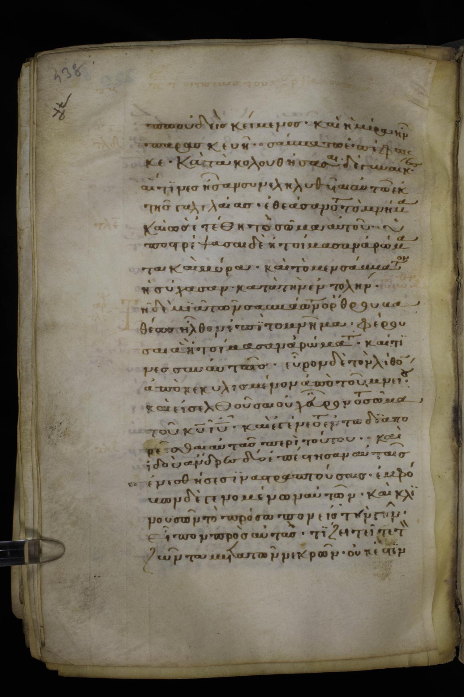 Thirteenth century minuscule of the Gospels on parchment; 298 leaves, 1 column, 22-24 lines per column. Images were taken at the National Library of Greece in Athens.