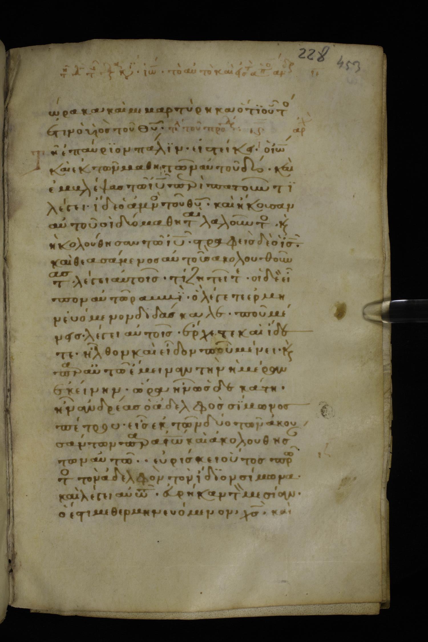 Thirteenth century minuscule of the Gospels on parchment; 298 leaves, 1 column, 22-24 lines per column. Images were taken at the National Library of Greece in Athens.