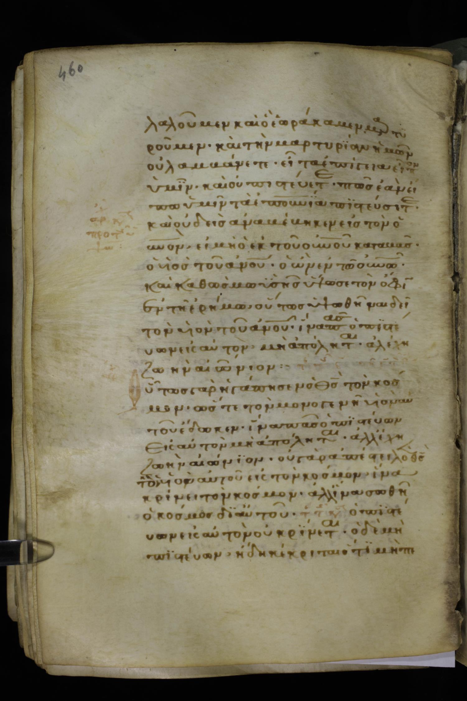 Thirteenth century minuscule of the Gospels on parchment; 298 leaves, 1 column, 22-24 lines per column. Images were taken at the National Library of Greece in Athens.