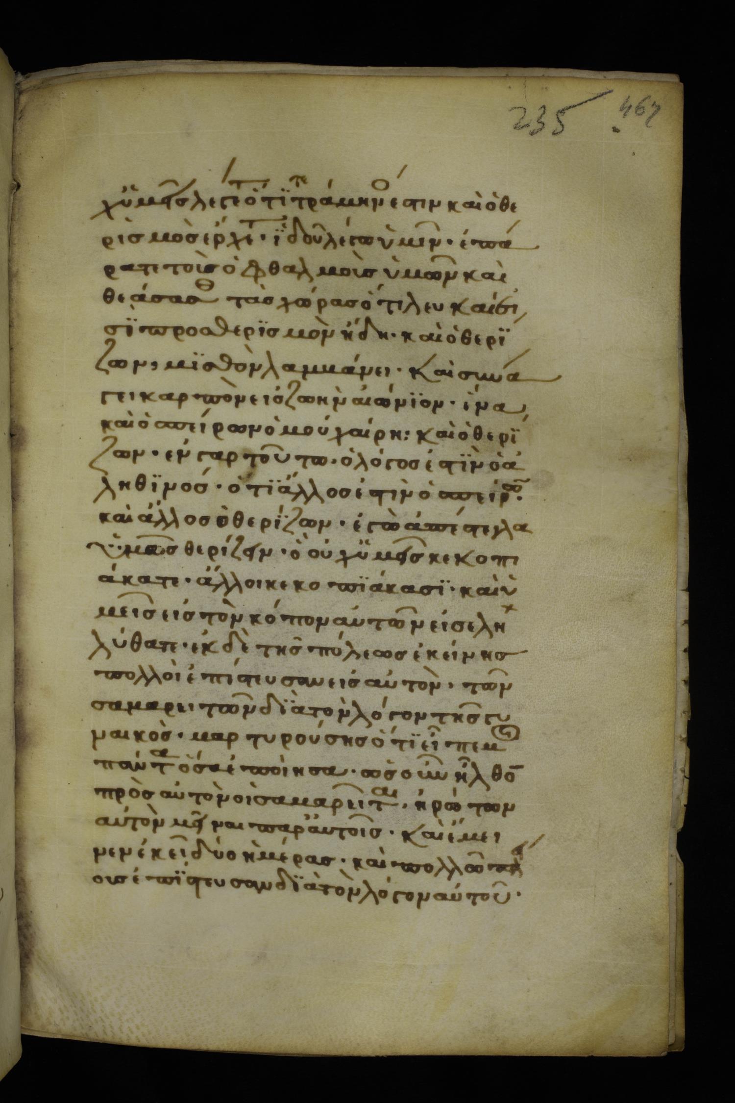 Thirteenth century minuscule of the Gospels on parchment; 298 leaves, 1 column, 22-24 lines per column. Images were taken at the National Library of Greece in Athens.