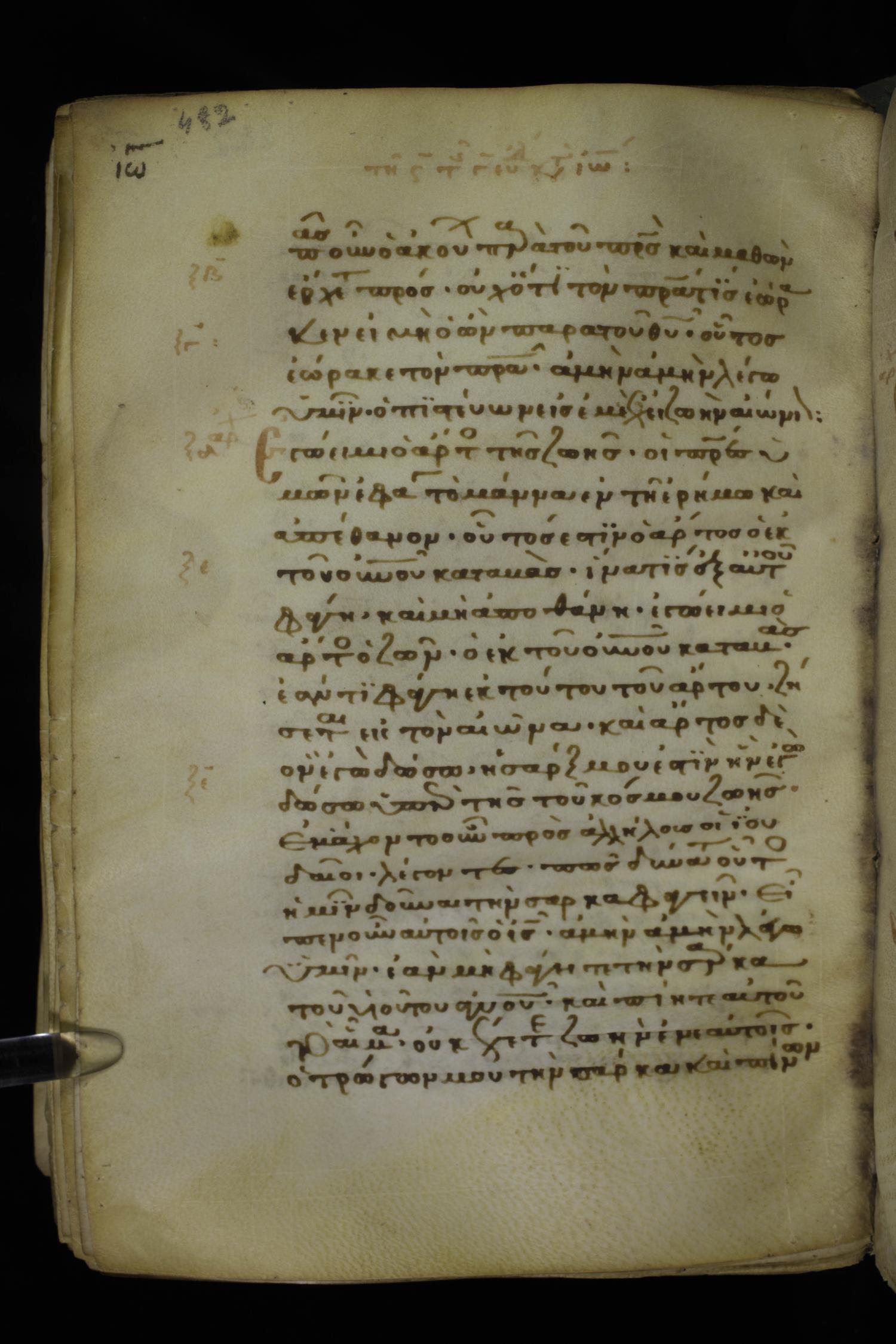 Thirteenth century minuscule of the Gospels on parchment; 298 leaves, 1 column, 22-24 lines per column. Images were taken at the National Library of Greece in Athens.