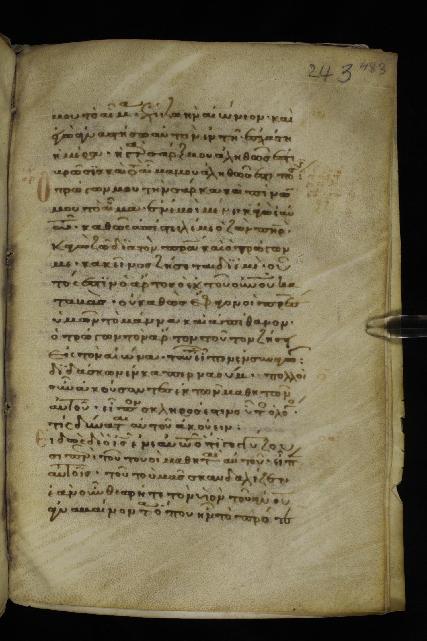 Thirteenth century minuscule of the Gospels on parchment; 298 leaves, 1 column, 22-24 lines per column. Images were taken at the National Library of Greece in Athens.