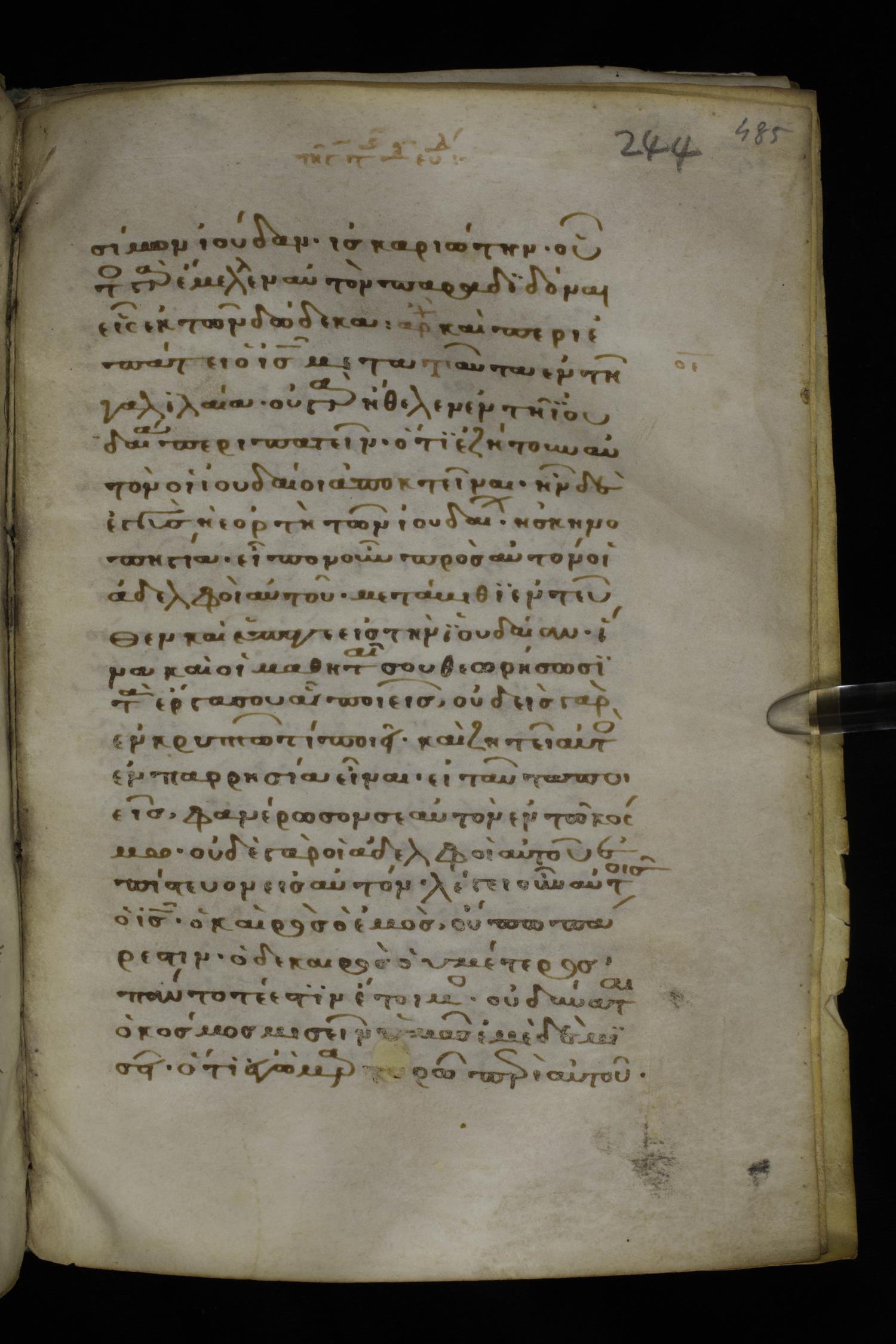 Thirteenth century minuscule of the Gospels on parchment; 298 leaves, 1 column, 22-24 lines per column. Images were taken at the National Library of Greece in Athens.