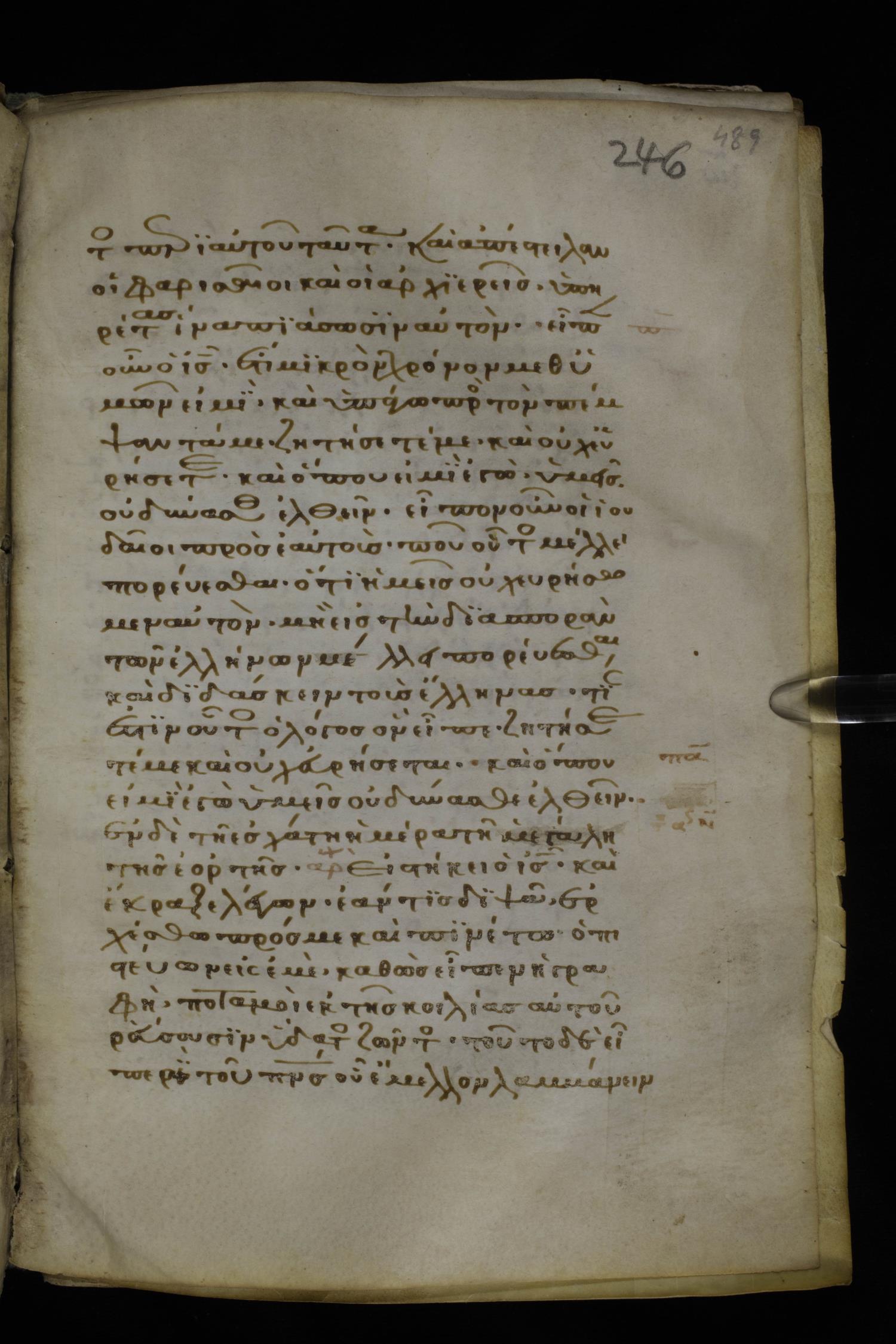 Thirteenth century minuscule of the Gospels on parchment; 298 leaves, 1 column, 22-24 lines per column. Images were taken at the National Library of Greece in Athens.