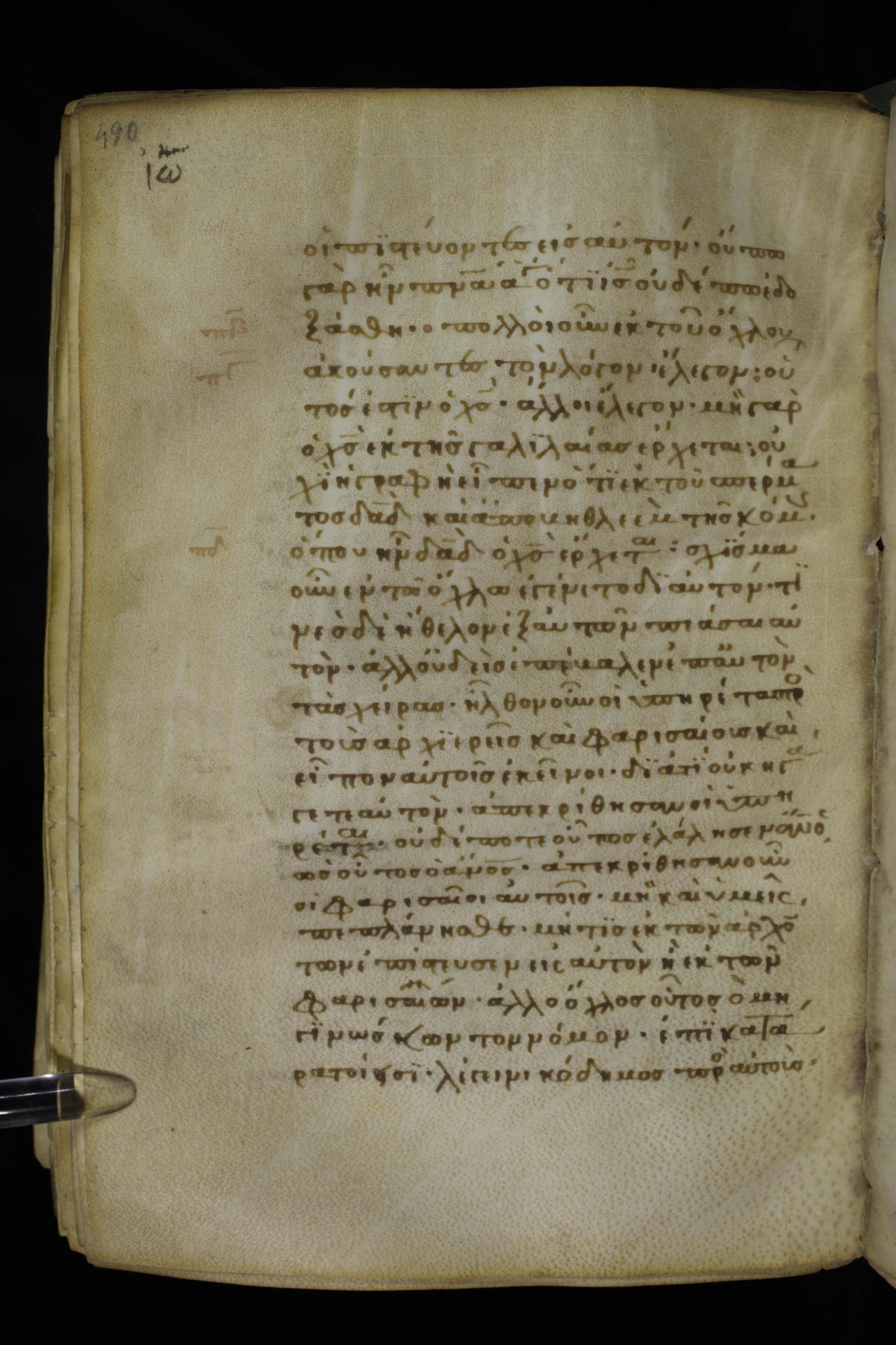 Thirteenth century minuscule of the Gospels on parchment; 298 leaves, 1 column, 22-24 lines per column. Images were taken at the National Library of Greece in Athens.