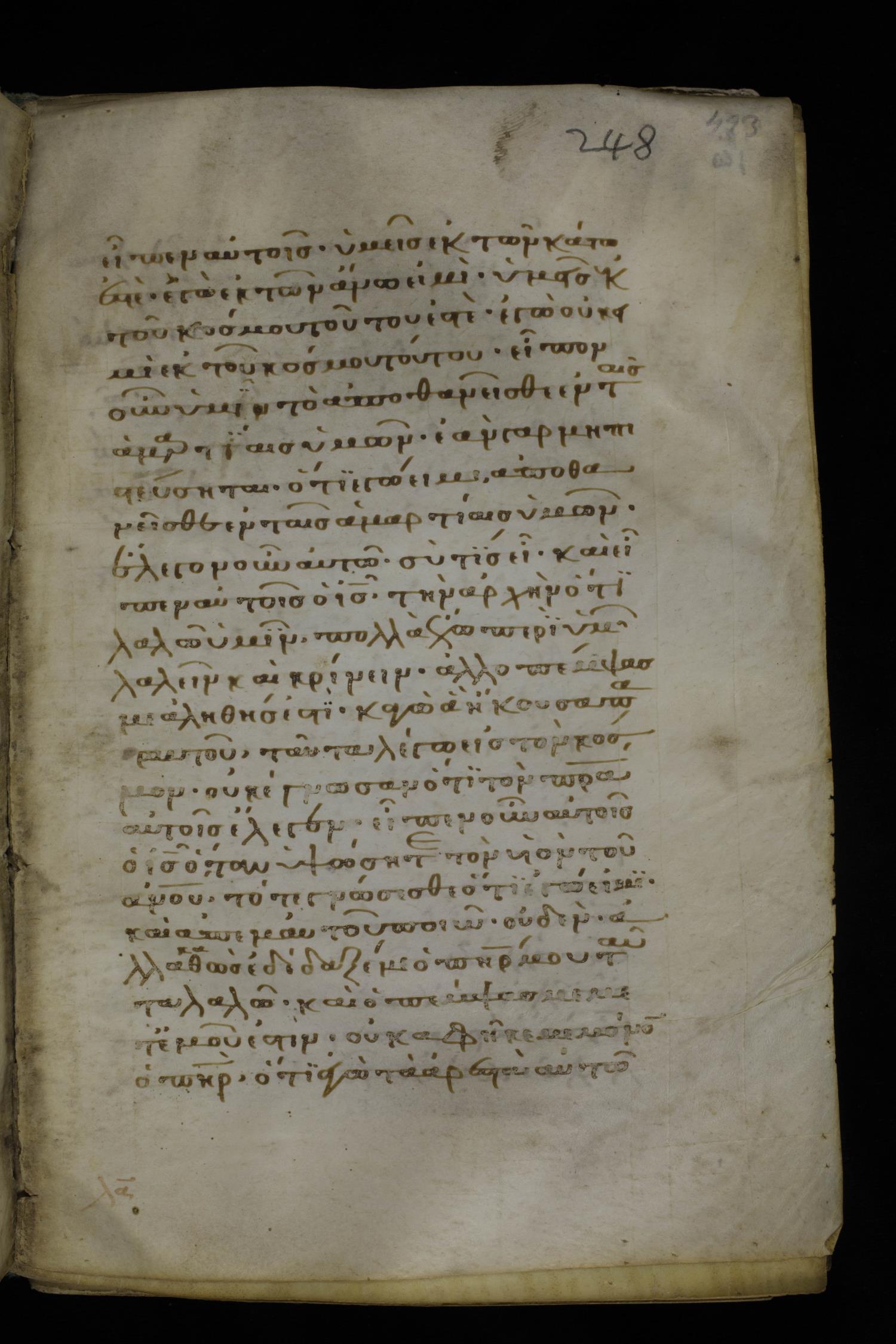 Thirteenth century minuscule of the Gospels on parchment; 298 leaves, 1 column, 22-24 lines per column. Images were taken at the National Library of Greece in Athens.