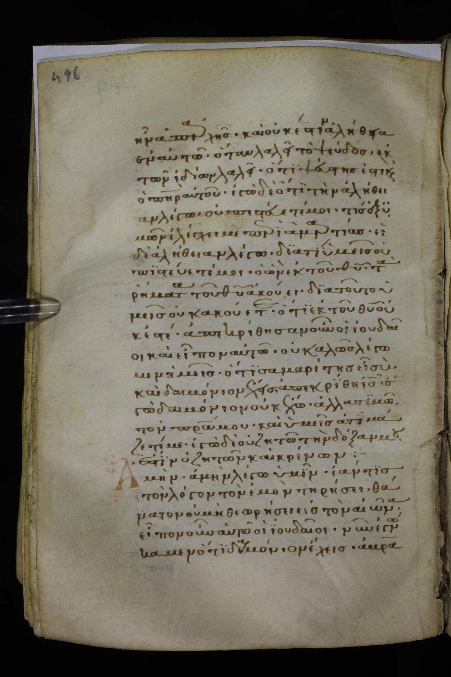 Thirteenth century minuscule of the Gospels on parchment; 298 leaves, 1 column, 22-24 lines per column. Images were taken at the National Library of Greece in Athens.