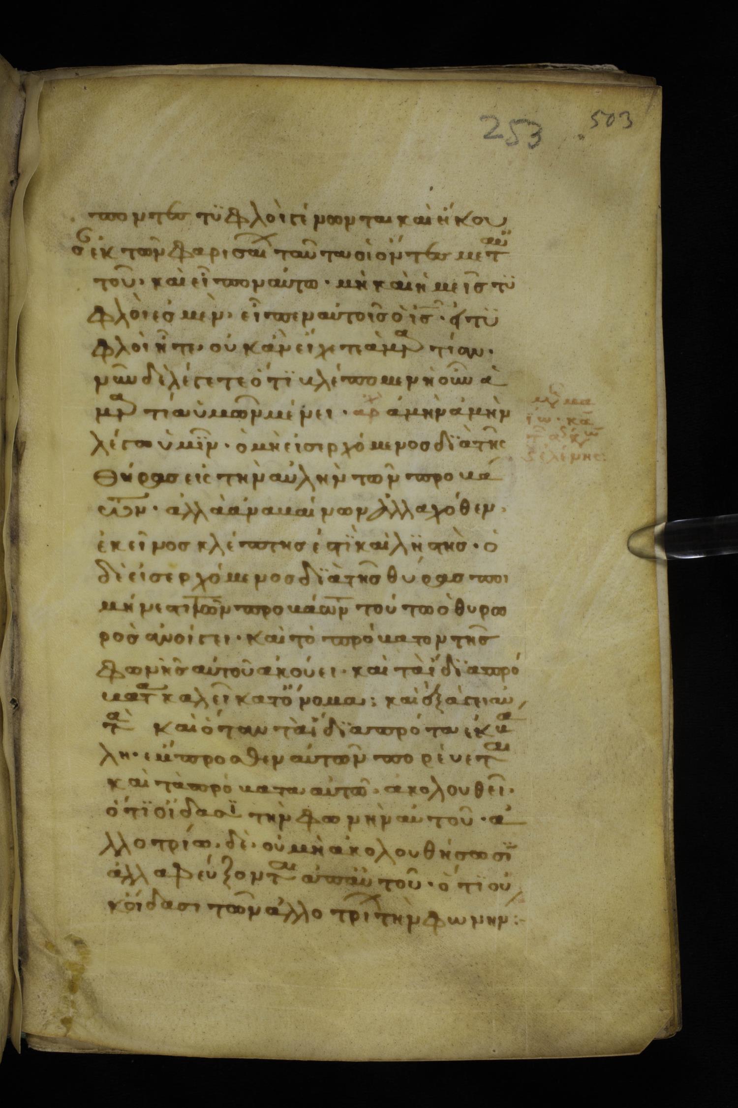 Thirteenth century minuscule of the Gospels on parchment; 298 leaves, 1 column, 22-24 lines per column. Images were taken at the National Library of Greece in Athens.