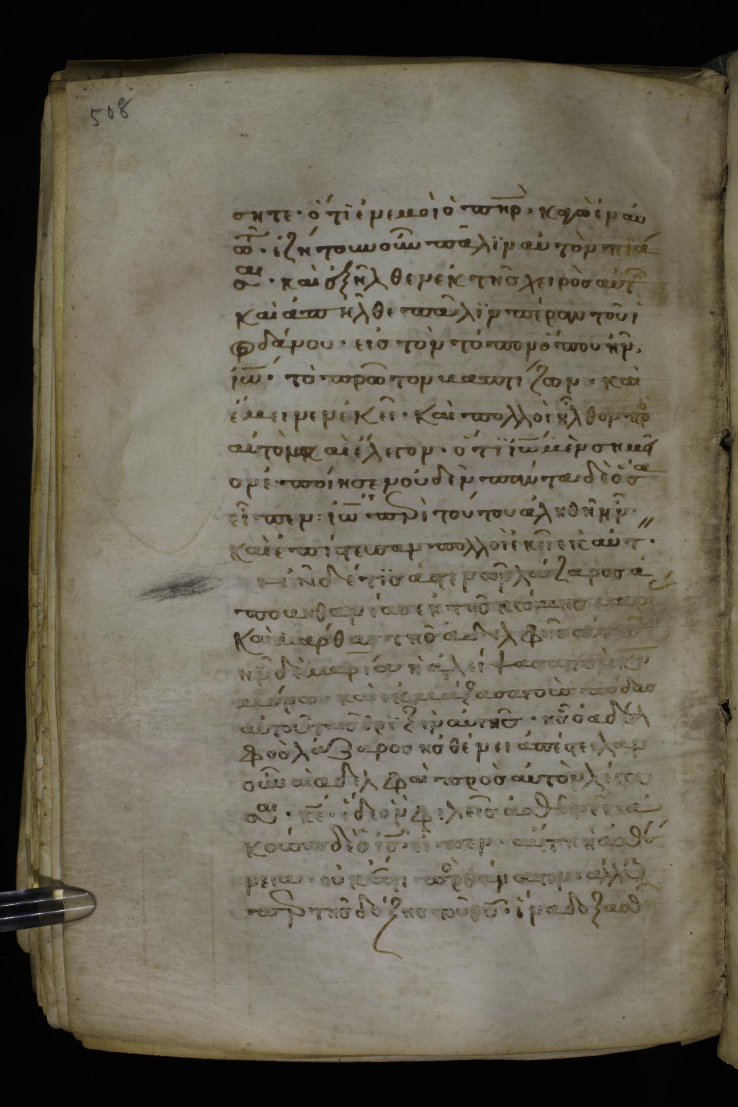 Thirteenth century minuscule of the Gospels on parchment; 298 leaves, 1 column, 22-24 lines per column. Images were taken at the National Library of Greece in Athens.
