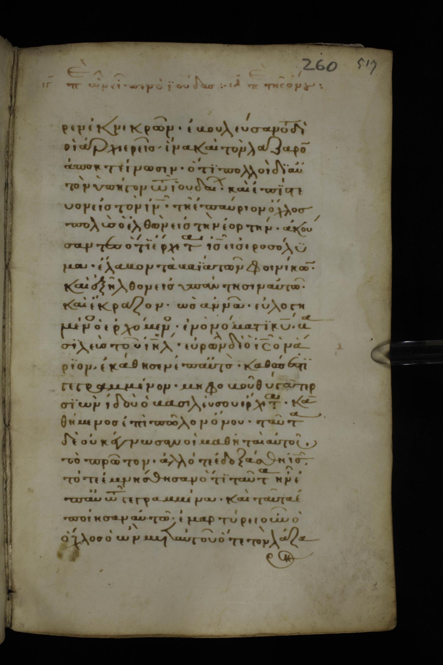 Thirteenth century minuscule of the Gospels on parchment; 298 leaves, 1 column, 22-24 lines per column. Images were taken at the National Library of Greece in Athens.