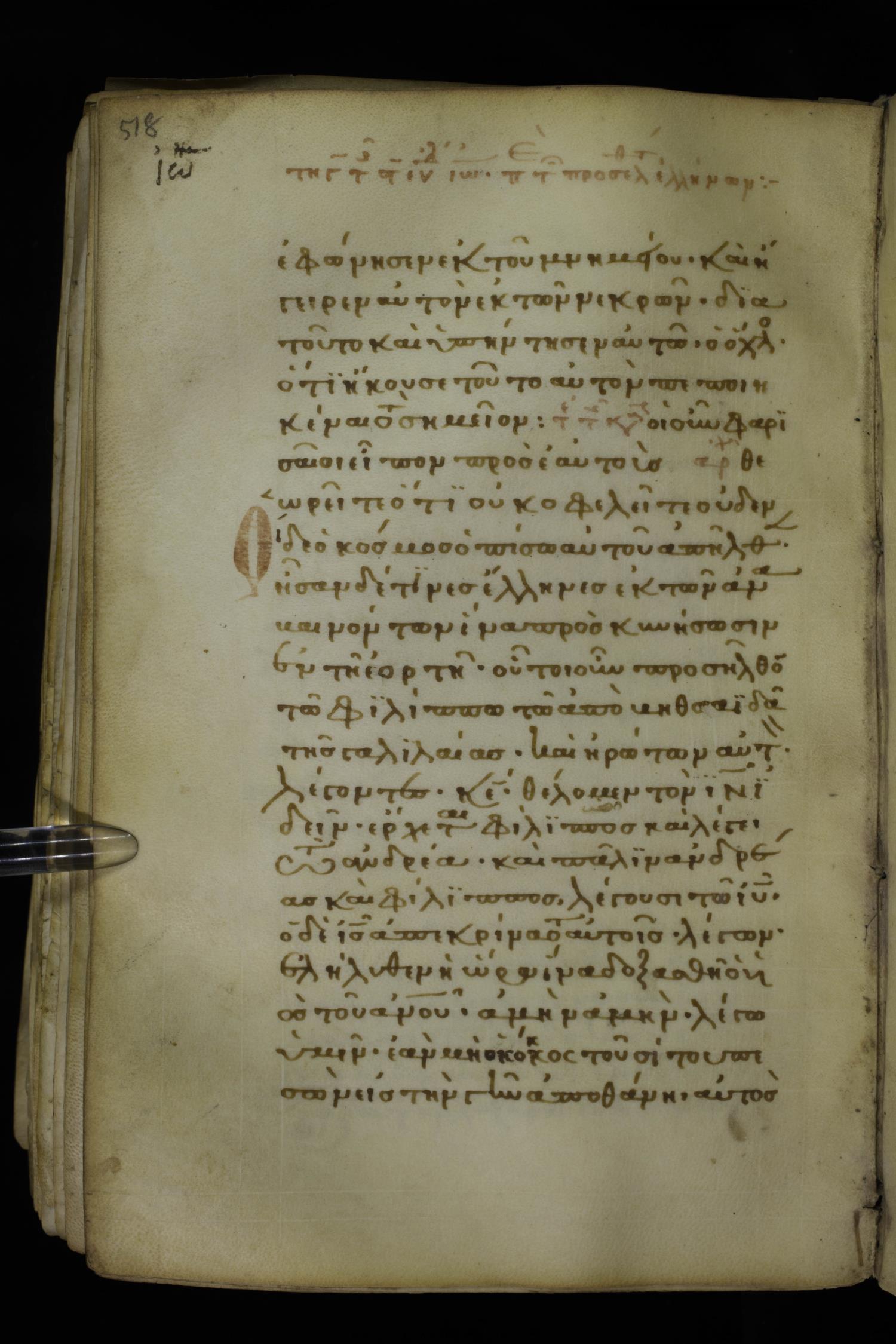 Thirteenth century minuscule of the Gospels on parchment; 298 leaves, 1 column, 22-24 lines per column. Images were taken at the National Library of Greece in Athens.