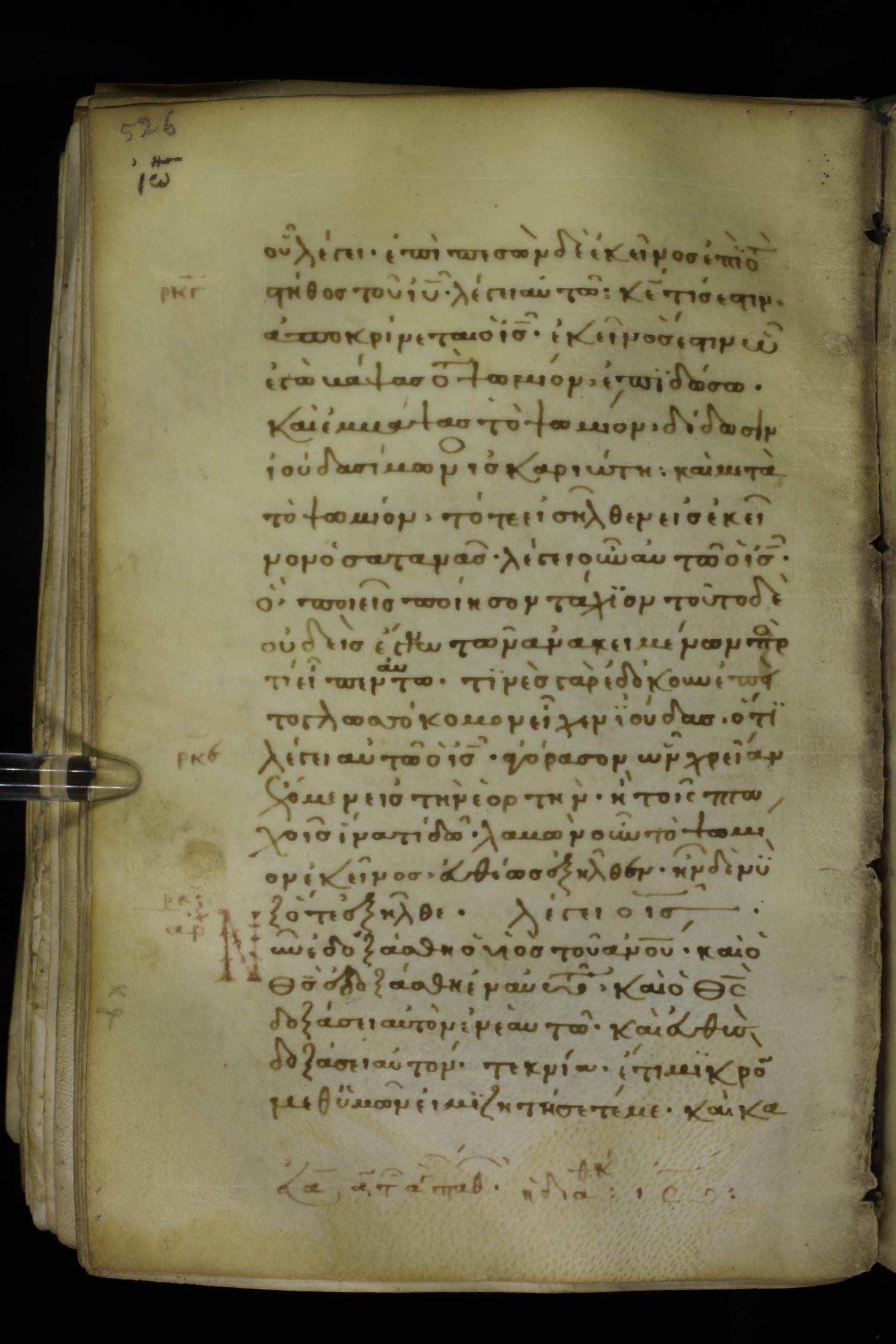 Thirteenth century minuscule of the Gospels on parchment; 298 leaves, 1 column, 22-24 lines per column. Images were taken at the National Library of Greece in Athens.