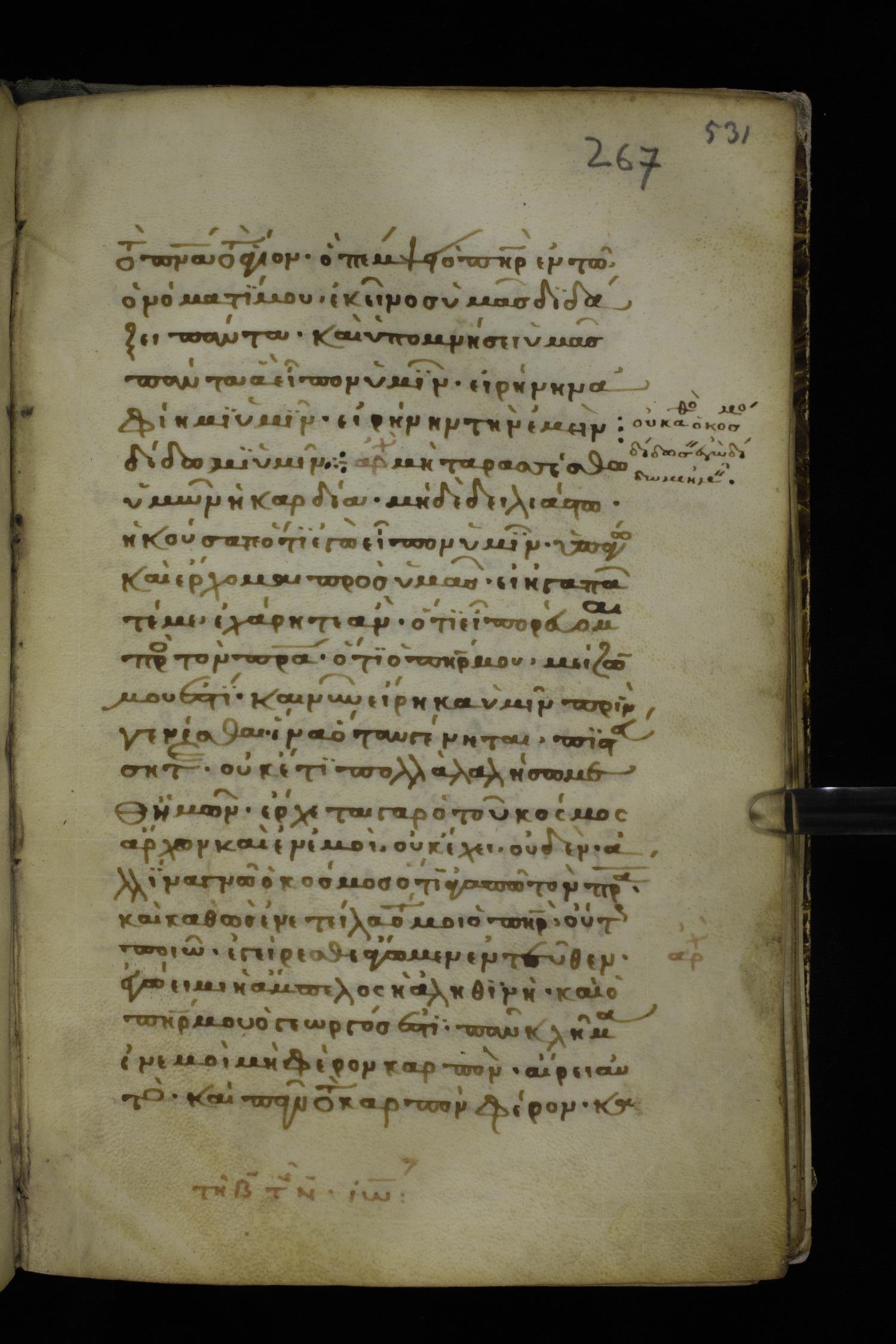 Thirteenth century minuscule of the Gospels on parchment; 298 leaves, 1 column, 22-24 lines per column. Images were taken at the National Library of Greece in Athens.