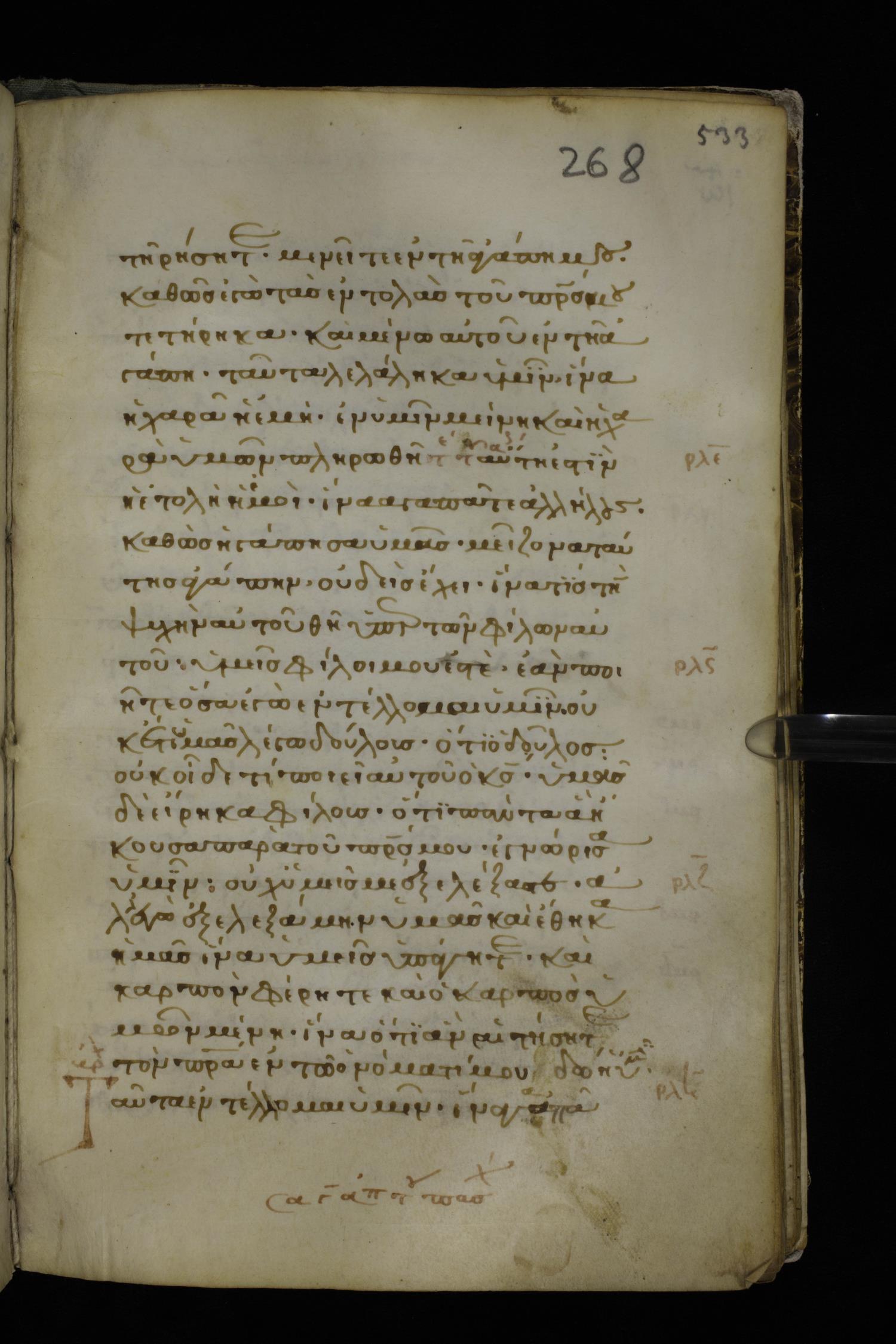 Thirteenth century minuscule of the Gospels on parchment; 298 leaves, 1 column, 22-24 lines per column. Images were taken at the National Library of Greece in Athens.