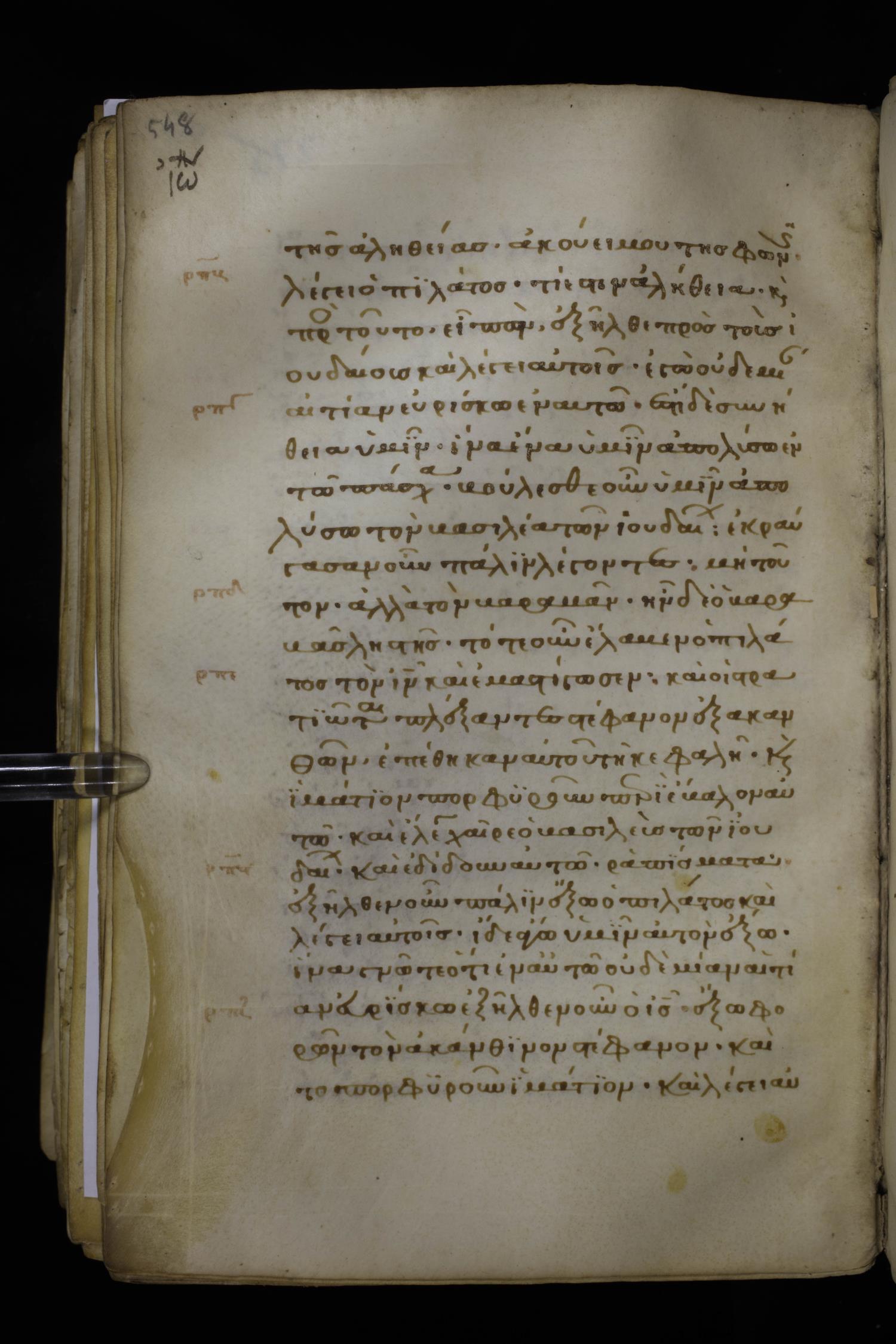 Thirteenth century minuscule of the Gospels on parchment; 298 leaves, 1 column, 22-24 lines per column. Images were taken at the National Library of Greece in Athens.