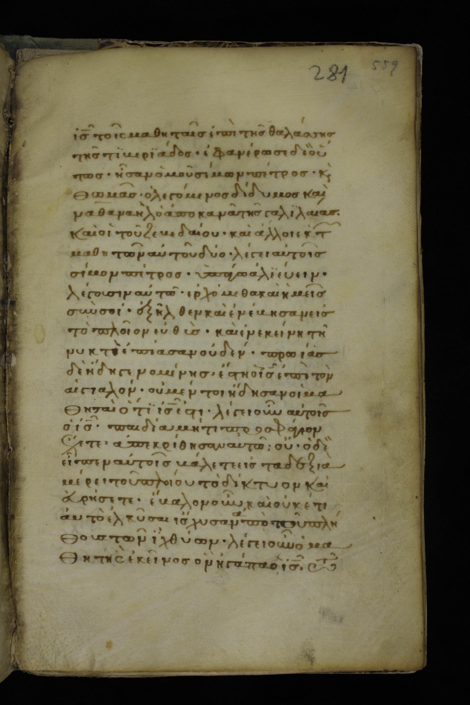 Thirteenth century minuscule of the Gospels on parchment; 298 leaves, 1 column, 22-24 lines per column. Images were taken at the National Library of Greece in Athens.