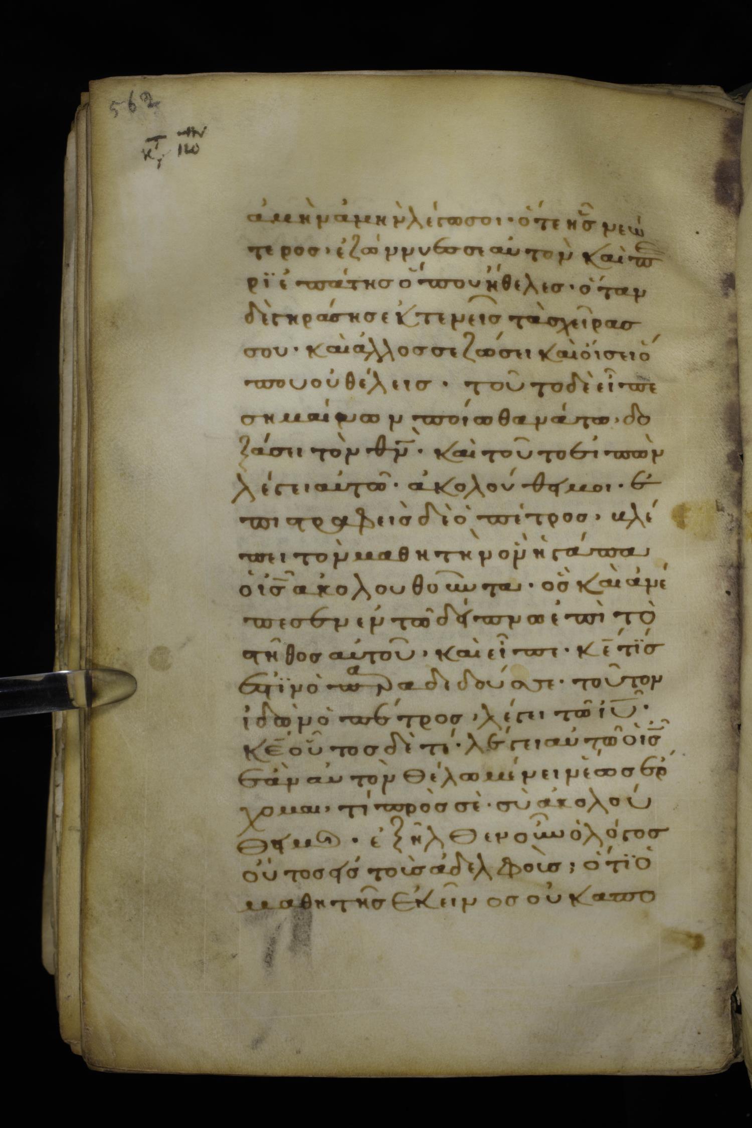 Thirteenth century minuscule of the Gospels on parchment; 298 leaves, 1 column, 22-24 lines per column. Images were taken at the National Library of Greece in Athens.