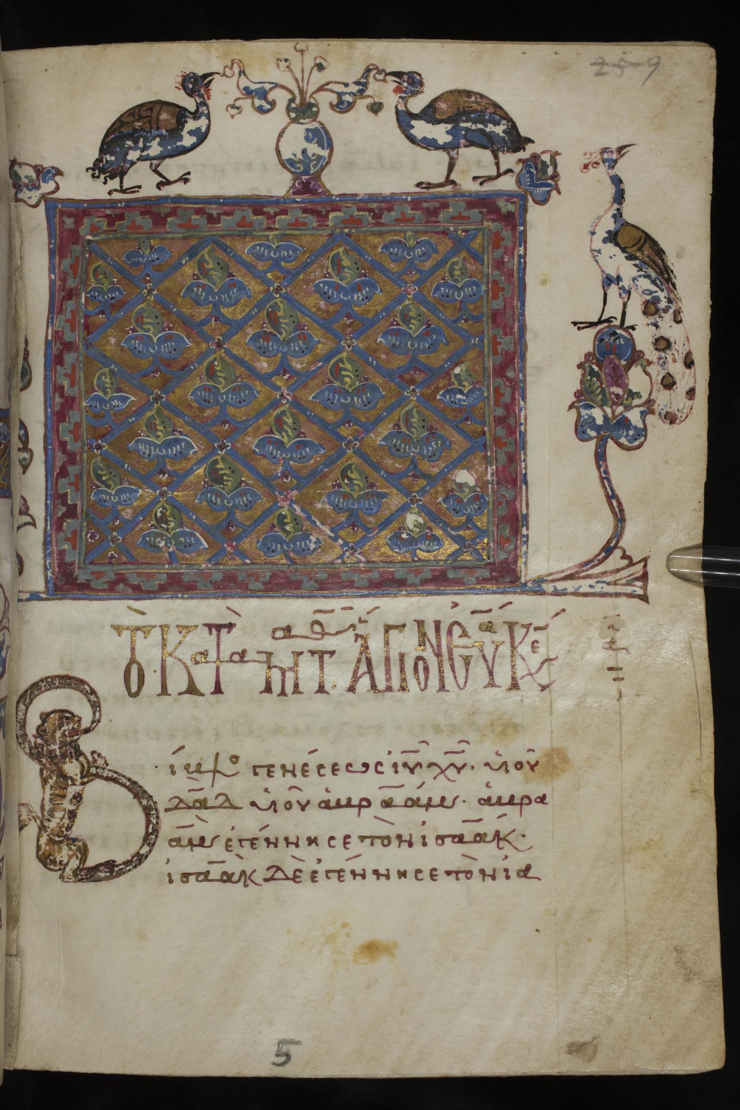 Twelfth century minuscule of the Gospels on parchment; 285 leaves, 1 column, 21-23 lines per column. Images were taken at the National Library of Greece in Athens.