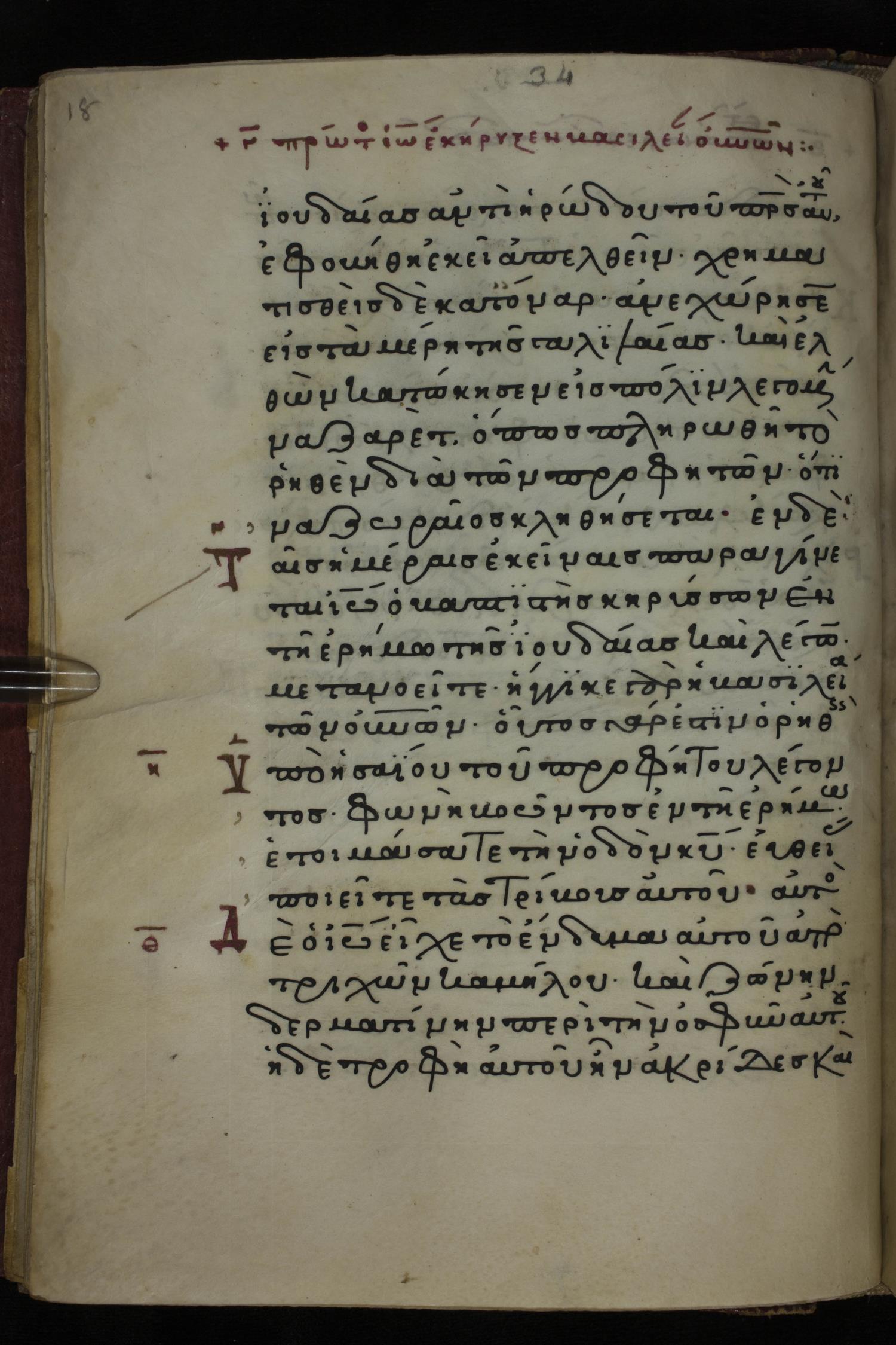 Twelfth century minuscule of the Gospels on parchment; 285 leaves, 1 column, 21-23 lines per column. Images were taken at the National Library of Greece in Athens.