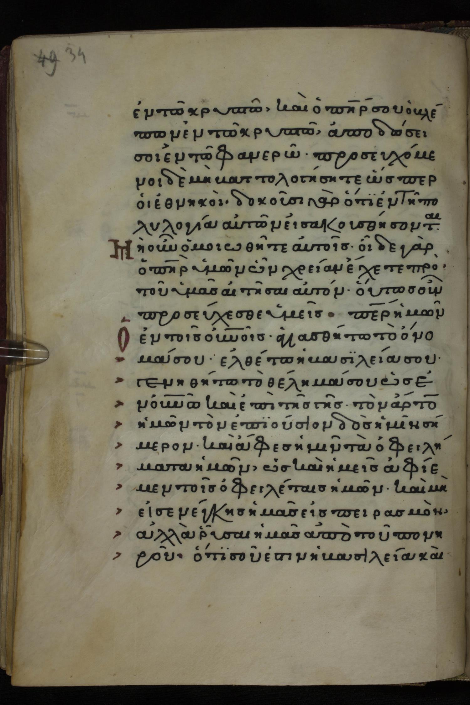 Twelfth century minuscule of the Gospels on parchment; 285 leaves, 1 column, 21-23 lines per column. Images were taken at the National Library of Greece in Athens.