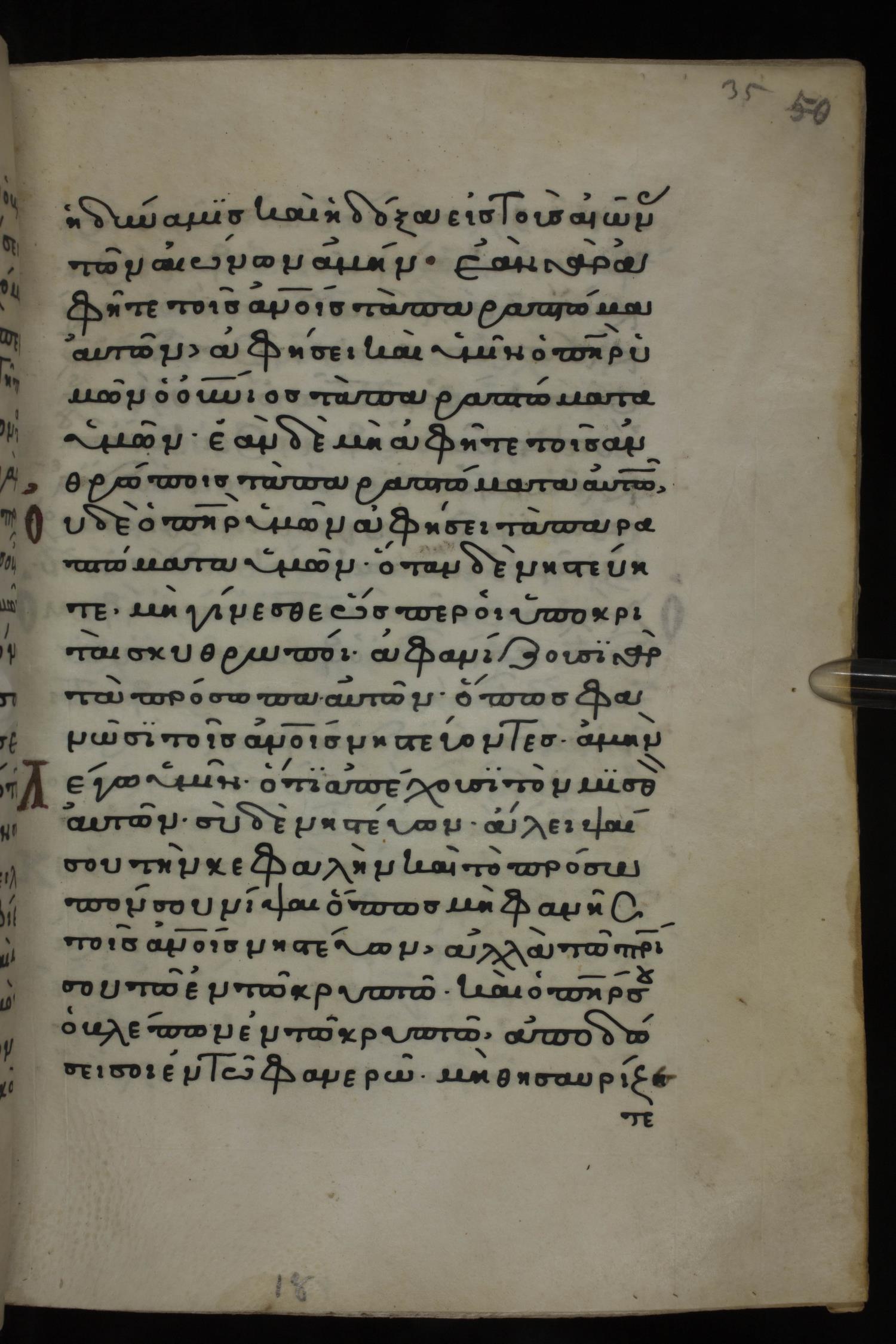 Twelfth century minuscule of the Gospels on parchment; 285 leaves, 1 column, 21-23 lines per column. Images were taken at the National Library of Greece in Athens.