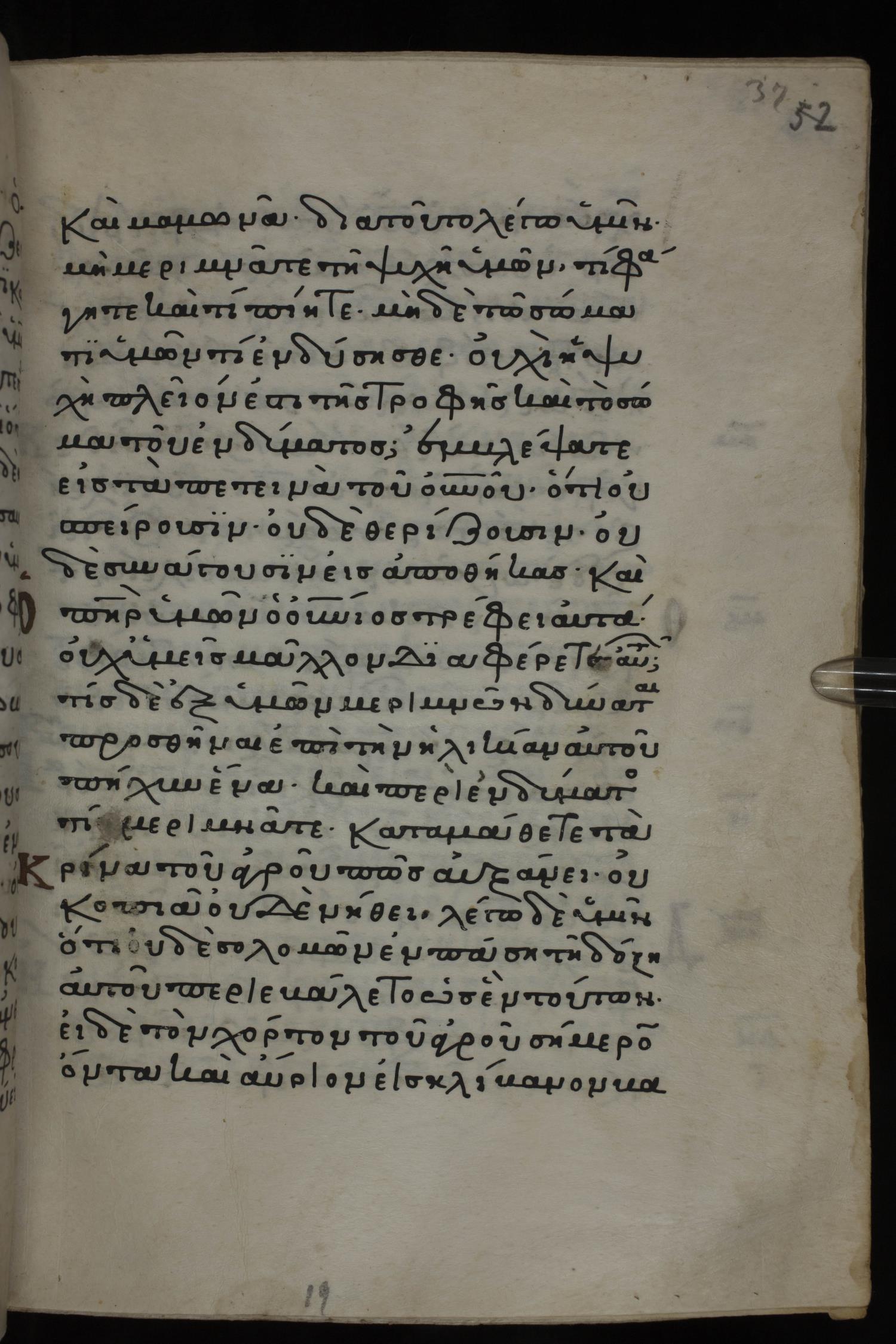 Twelfth century minuscule of the Gospels on parchment; 285 leaves, 1 column, 21-23 lines per column. Images were taken at the National Library of Greece in Athens.
