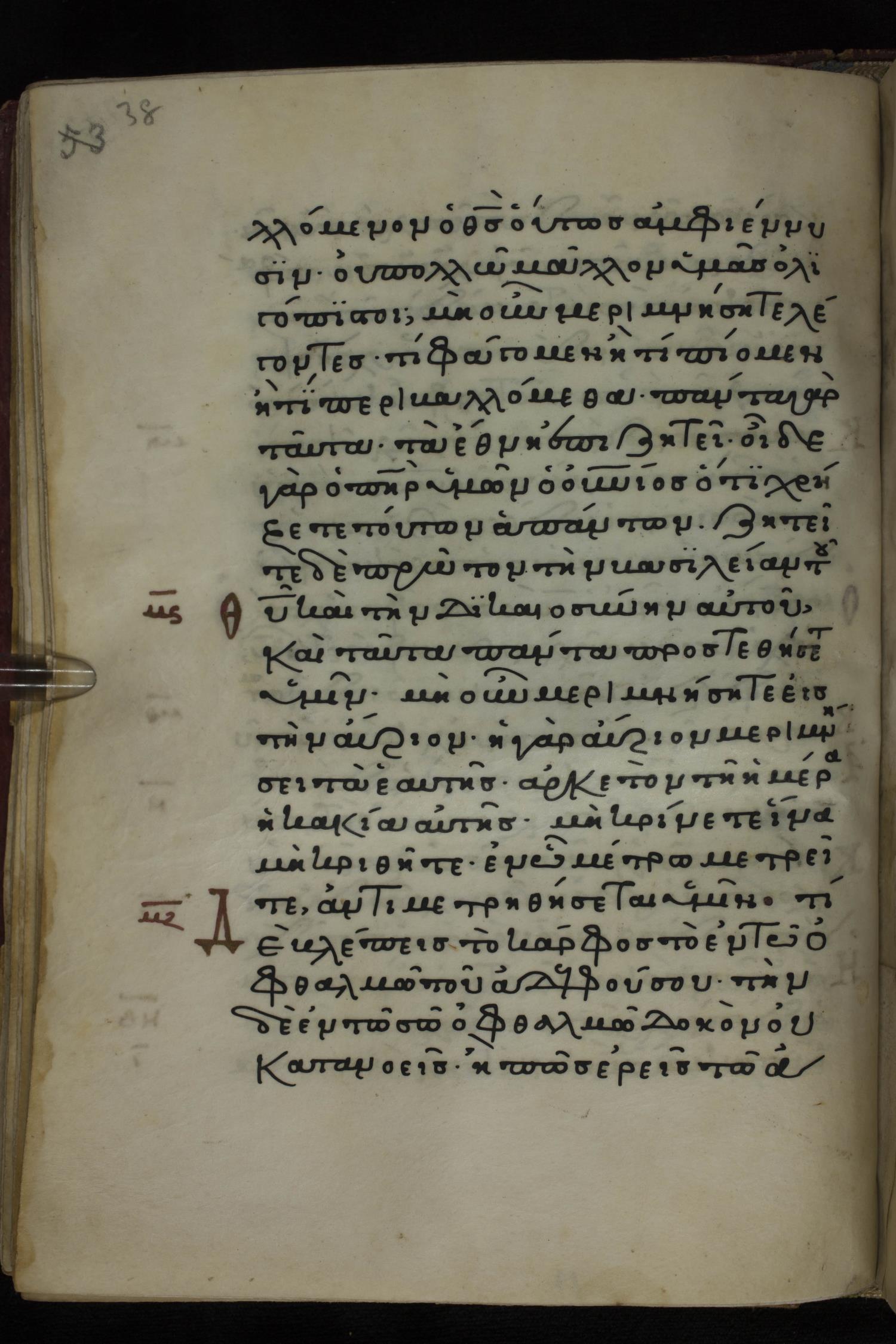 Twelfth century minuscule of the Gospels on parchment; 285 leaves, 1 column, 21-23 lines per column. Images were taken at the National Library of Greece in Athens.