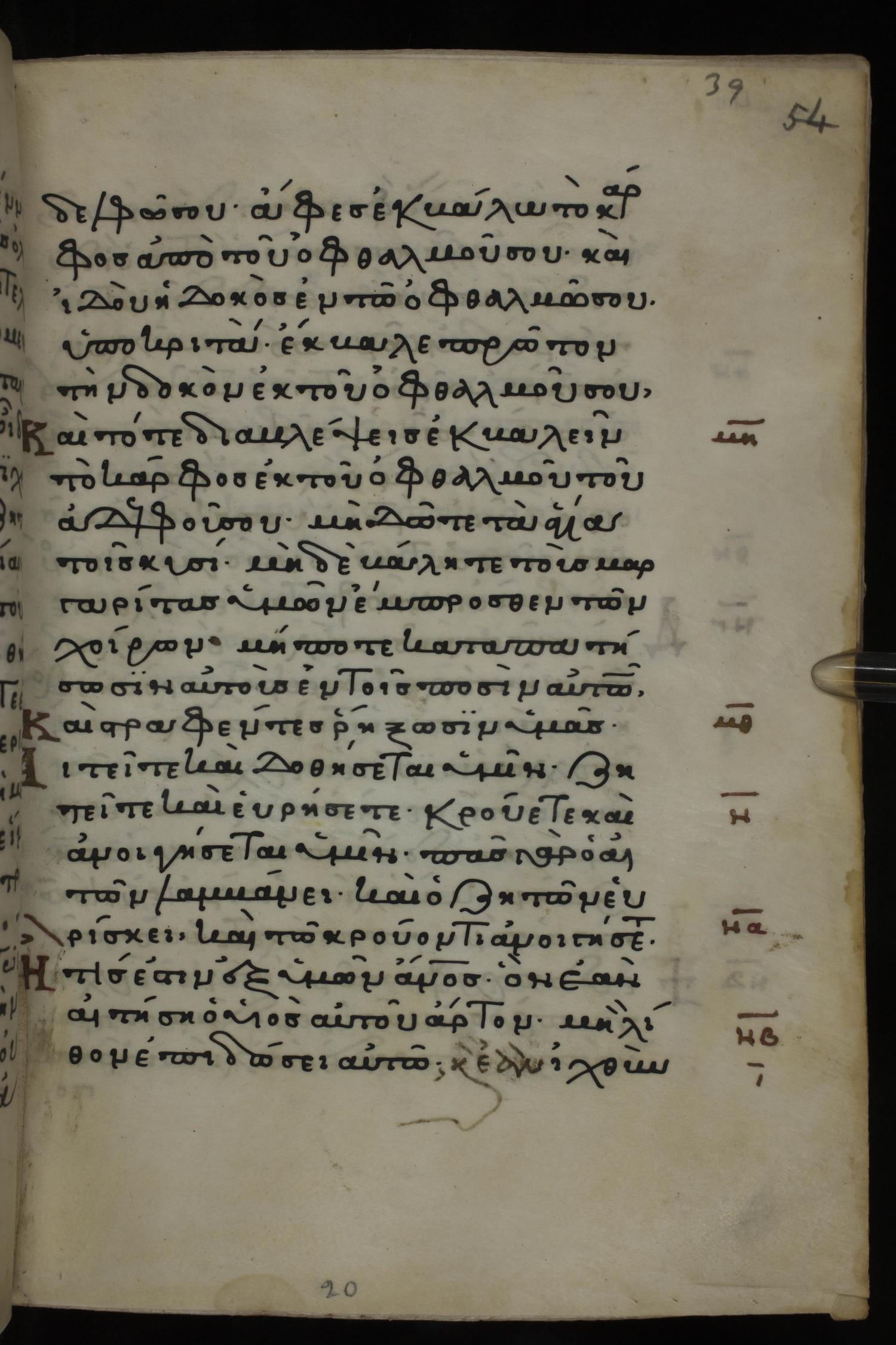 Twelfth century minuscule of the Gospels on parchment; 285 leaves, 1 column, 21-23 lines per column. Images were taken at the National Library of Greece in Athens.