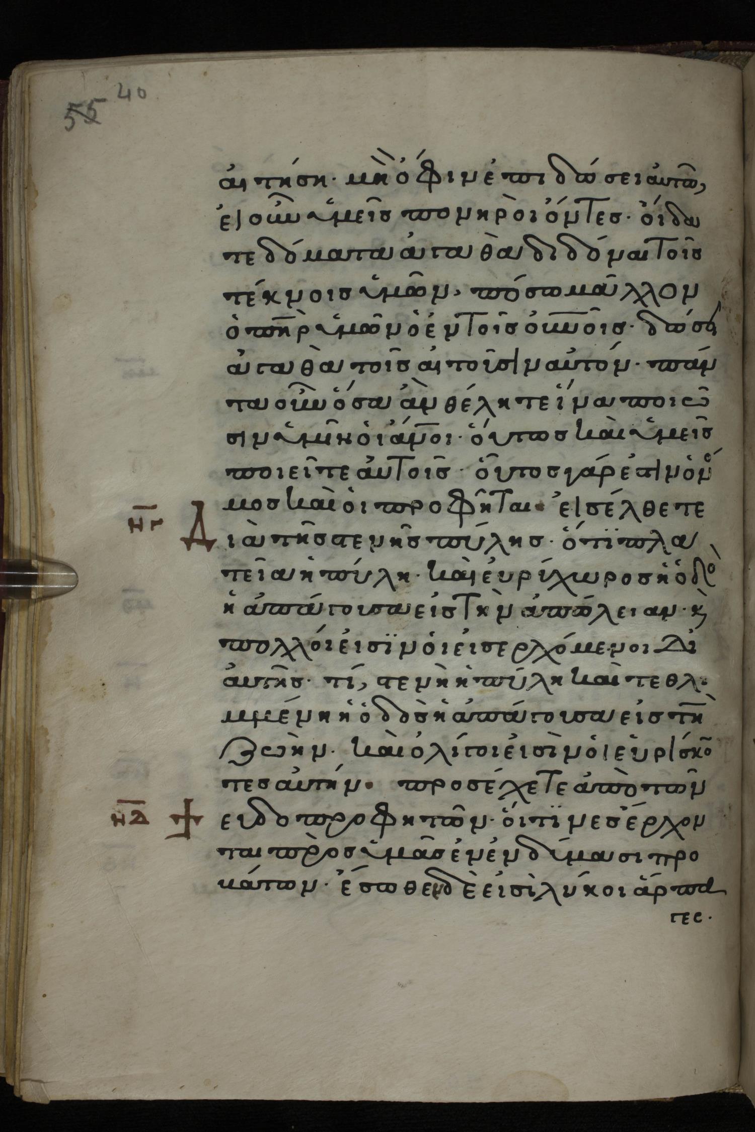 Twelfth century minuscule of the Gospels on parchment; 285 leaves, 1 column, 21-23 lines per column. Images were taken at the National Library of Greece in Athens.