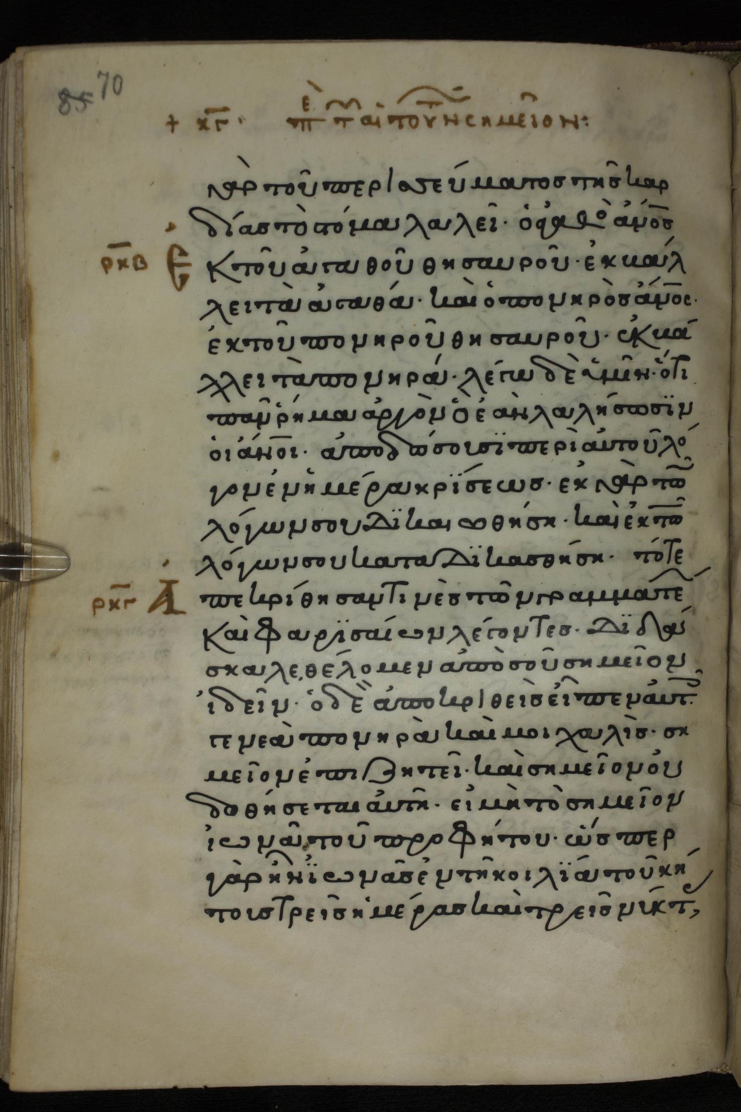 Twelfth century minuscule of the Gospels on parchment; 285 leaves, 1 column, 21-23 lines per column. Images were taken at the National Library of Greece in Athens.