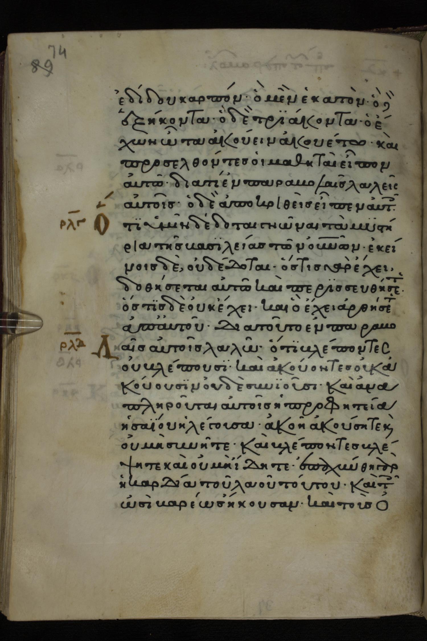 Twelfth century minuscule of the Gospels on parchment; 285 leaves, 1 column, 21-23 lines per column. Images were taken at the National Library of Greece in Athens.