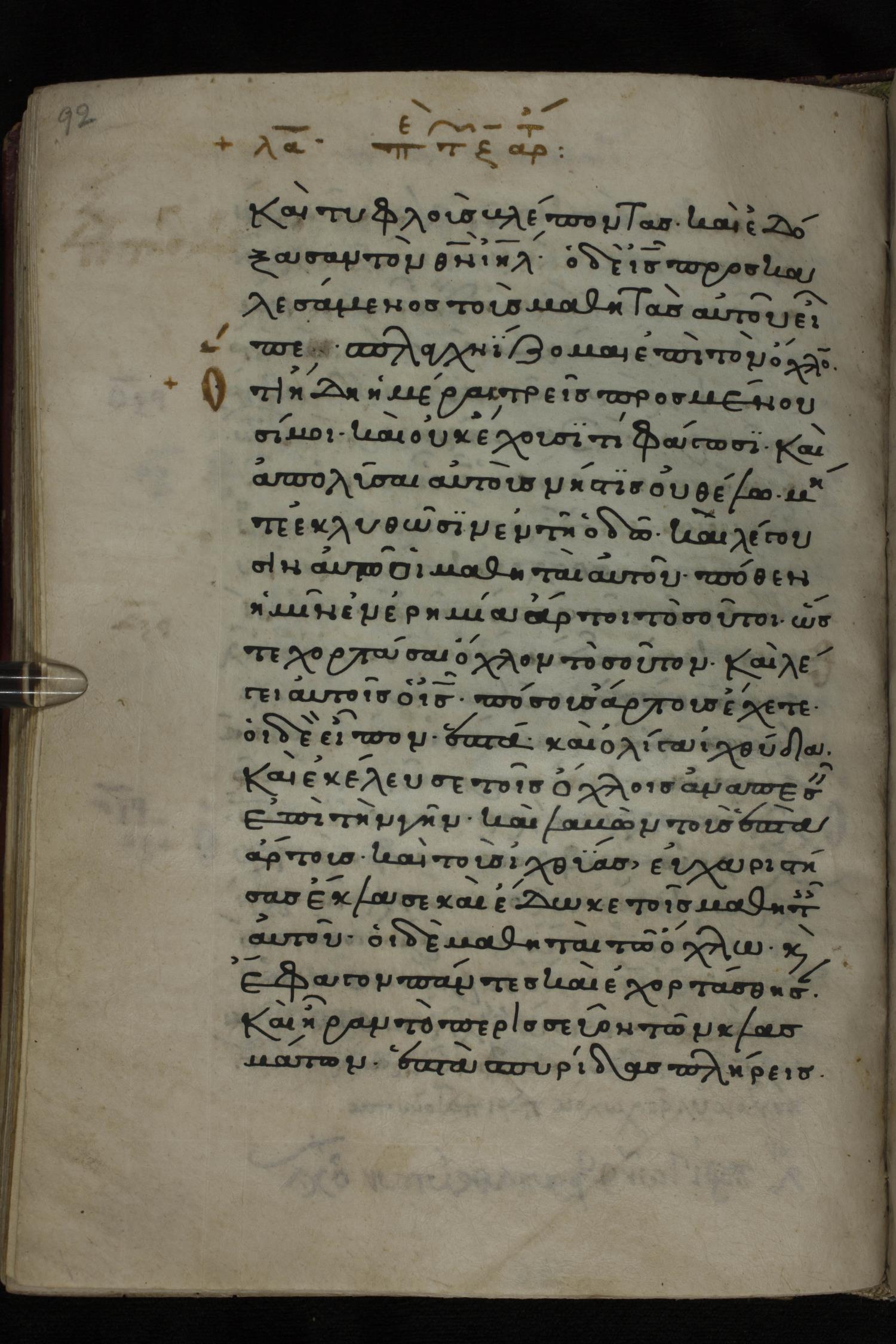Twelfth century minuscule of the Gospels on parchment; 285 leaves, 1 column, 21-23 lines per column. Images were taken at the National Library of Greece in Athens.
