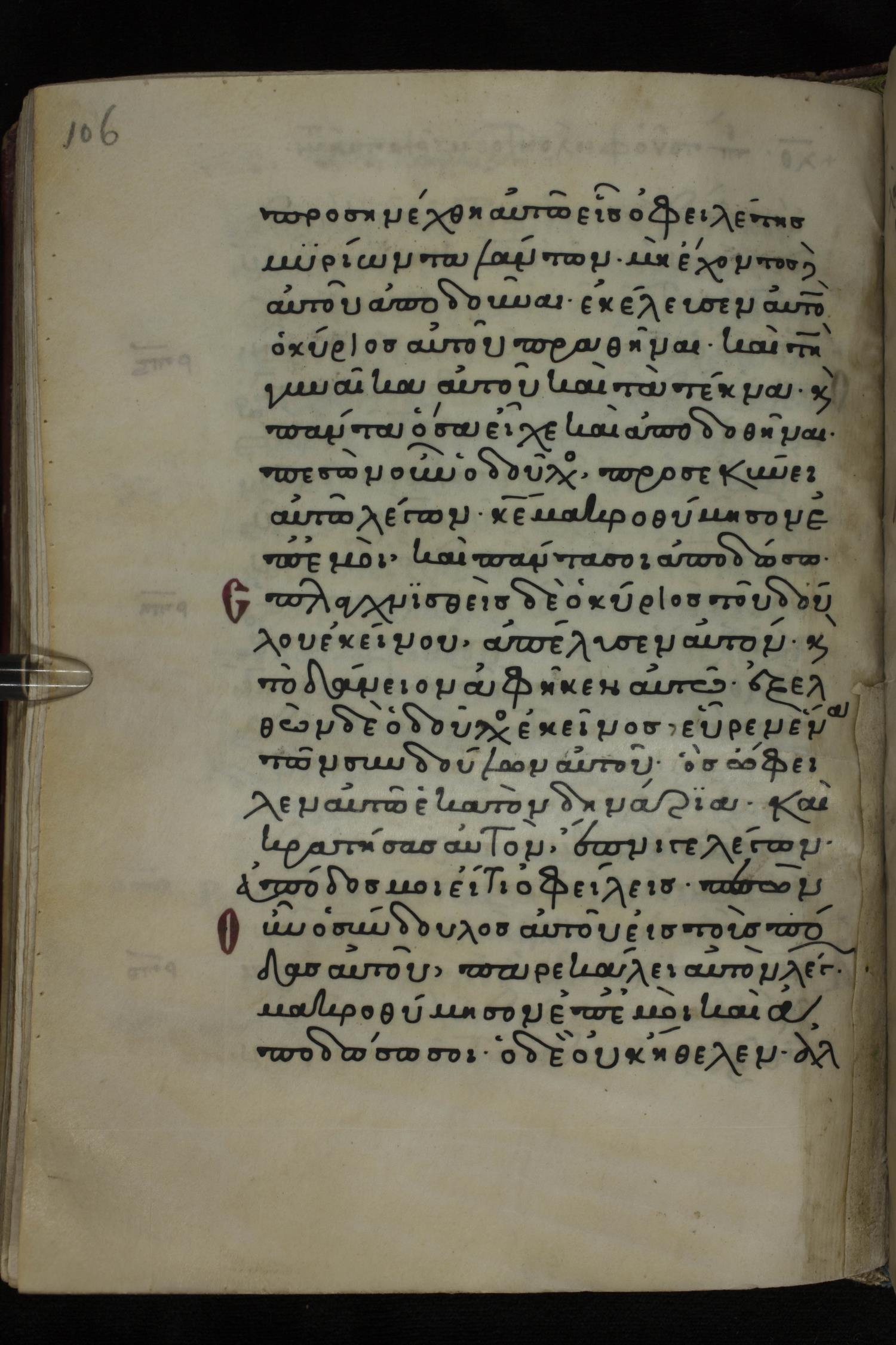Twelfth century minuscule of the Gospels on parchment; 285 leaves, 1 column, 21-23 lines per column. Images were taken at the National Library of Greece in Athens.