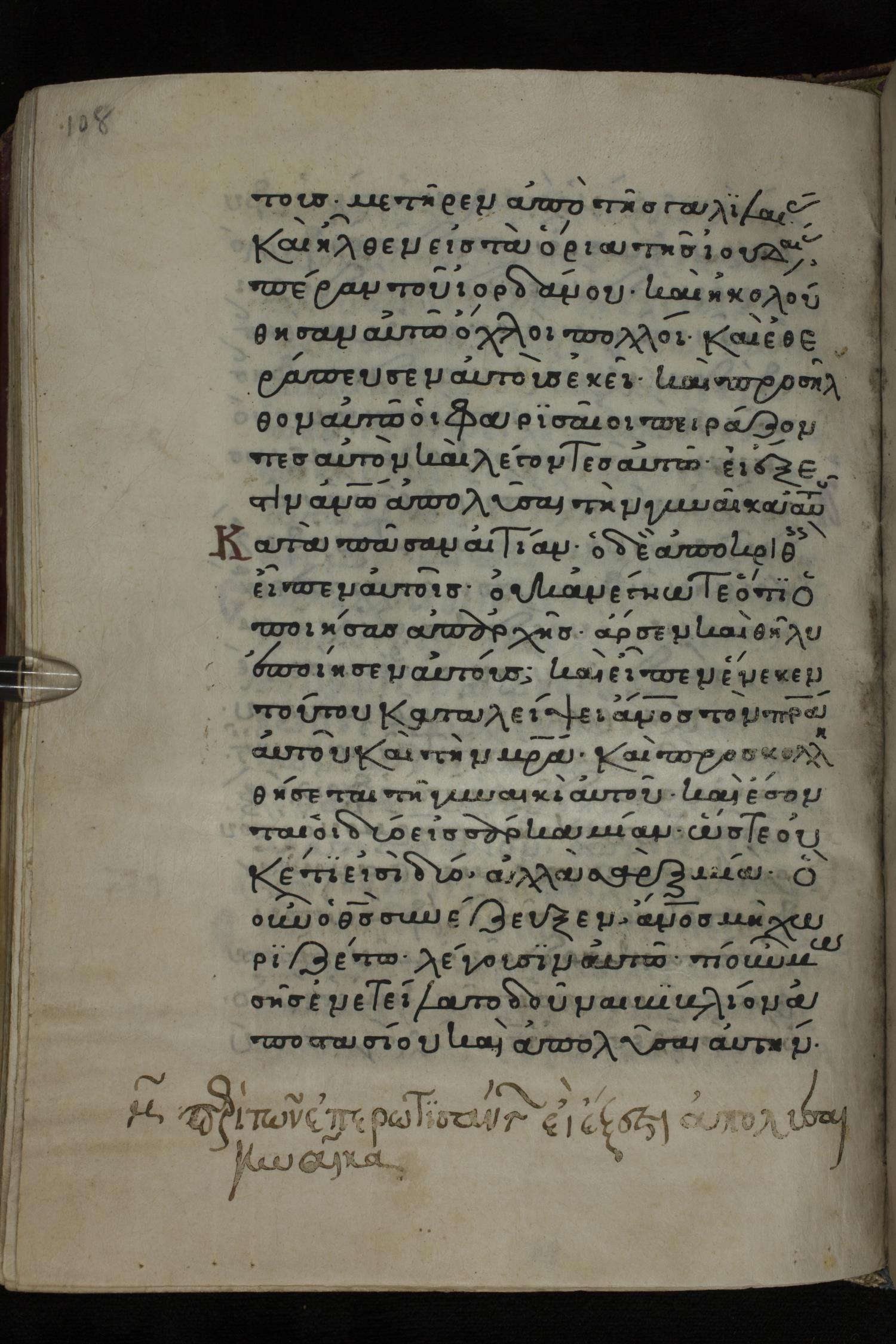 Twelfth century minuscule of the Gospels on parchment; 285 leaves, 1 column, 21-23 lines per column. Images were taken at the National Library of Greece in Athens.