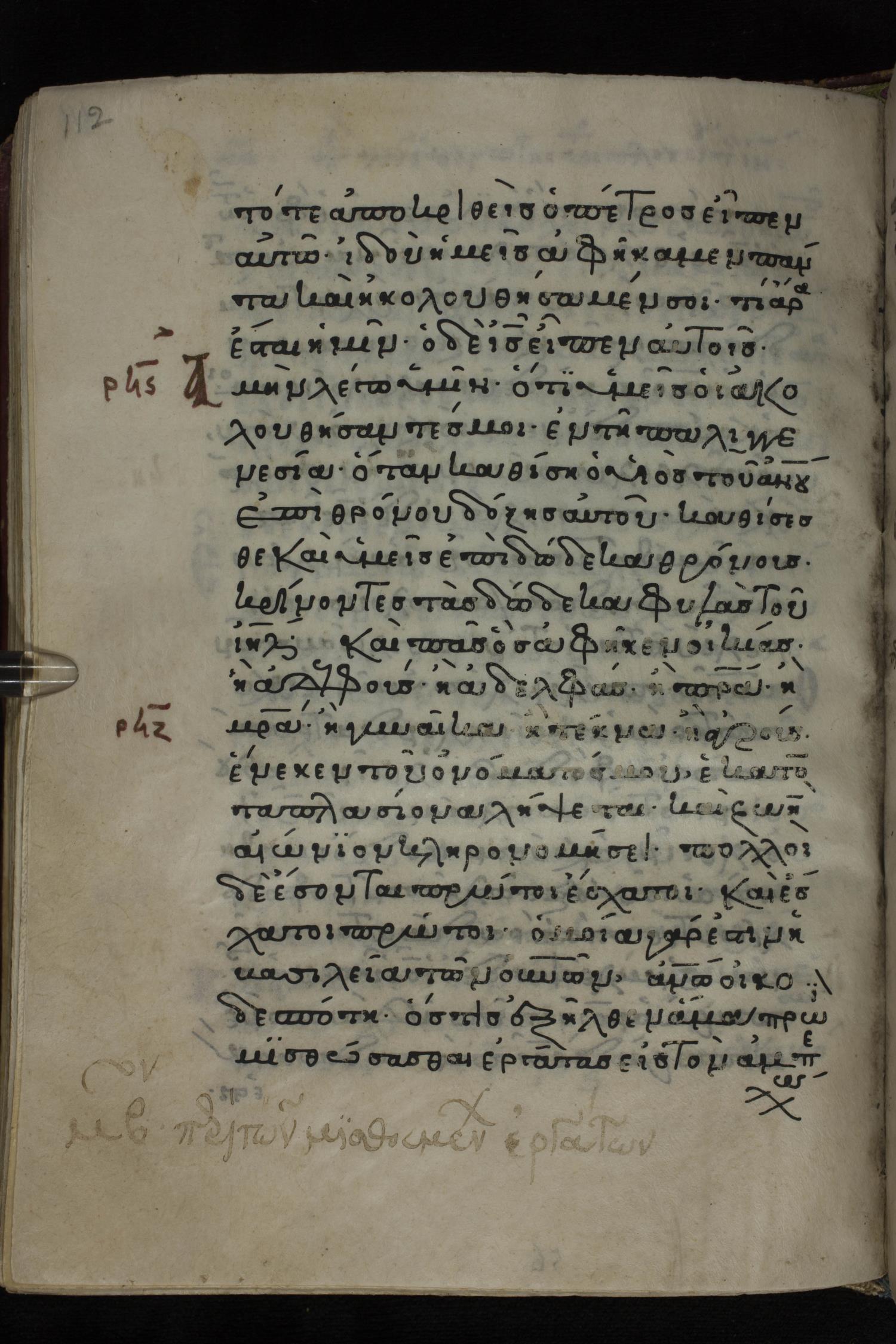 Twelfth century minuscule of the Gospels on parchment; 285 leaves, 1 column, 21-23 lines per column. Images were taken at the National Library of Greece in Athens.