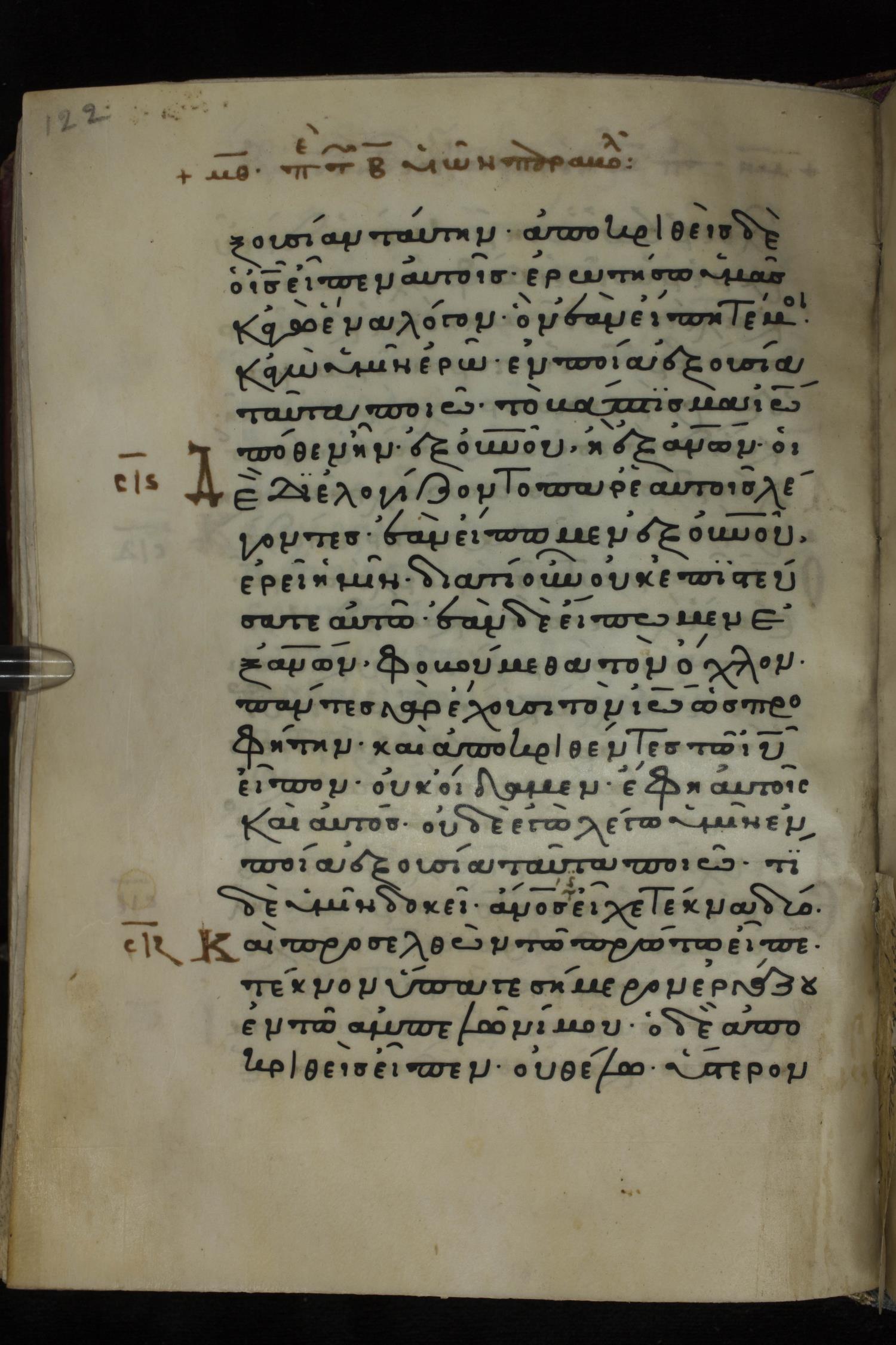 Twelfth century minuscule of the Gospels on parchment; 285 leaves, 1 column, 21-23 lines per column. Images were taken at the National Library of Greece in Athens.