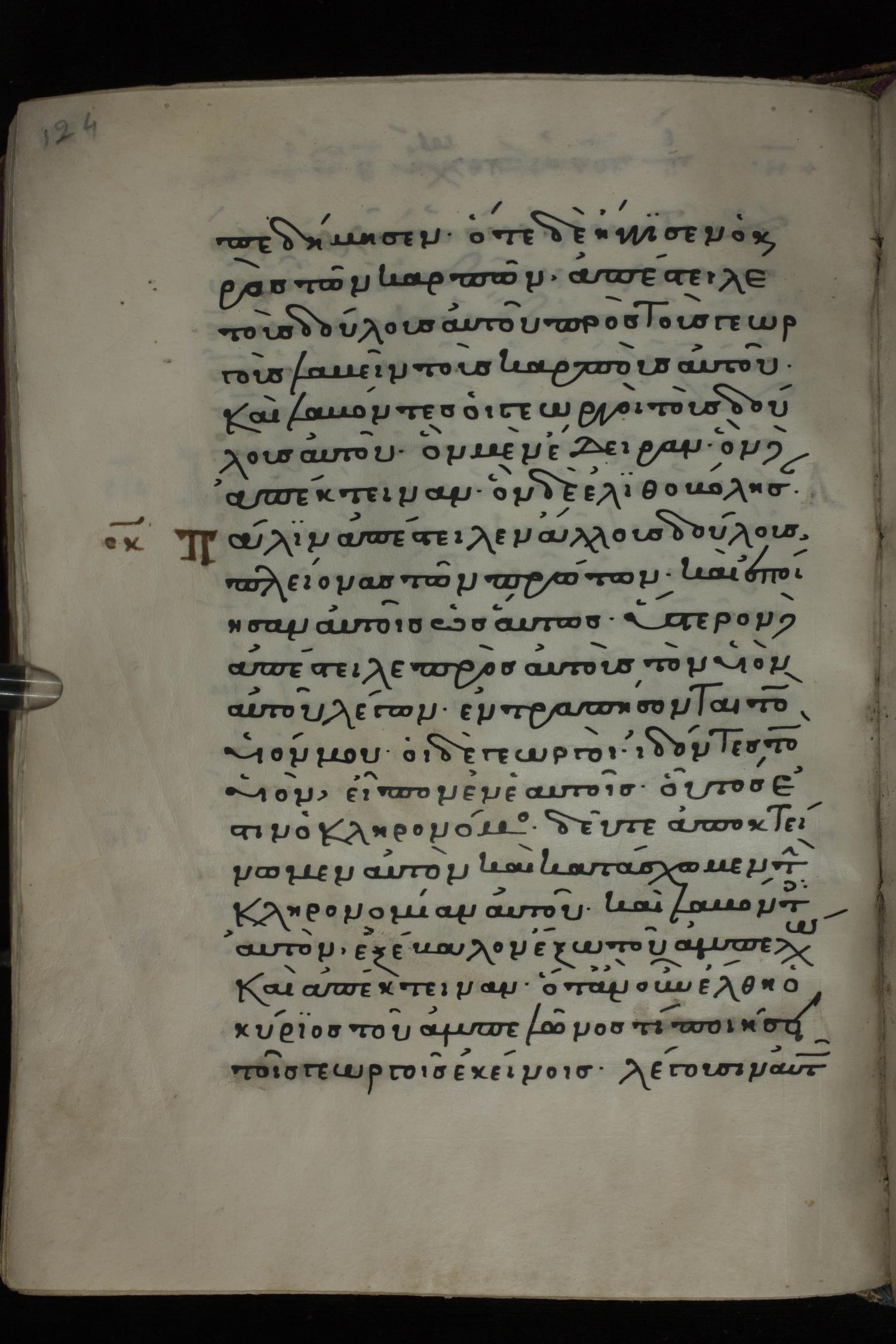 Twelfth century minuscule of the Gospels on parchment; 285 leaves, 1 column, 21-23 lines per column. Images were taken at the National Library of Greece in Athens.