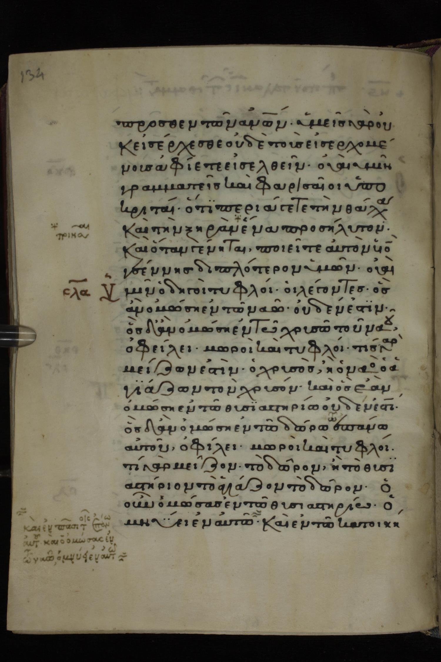 Twelfth century minuscule of the Gospels on parchment; 285 leaves, 1 column, 21-23 lines per column. Images were taken at the National Library of Greece in Athens.