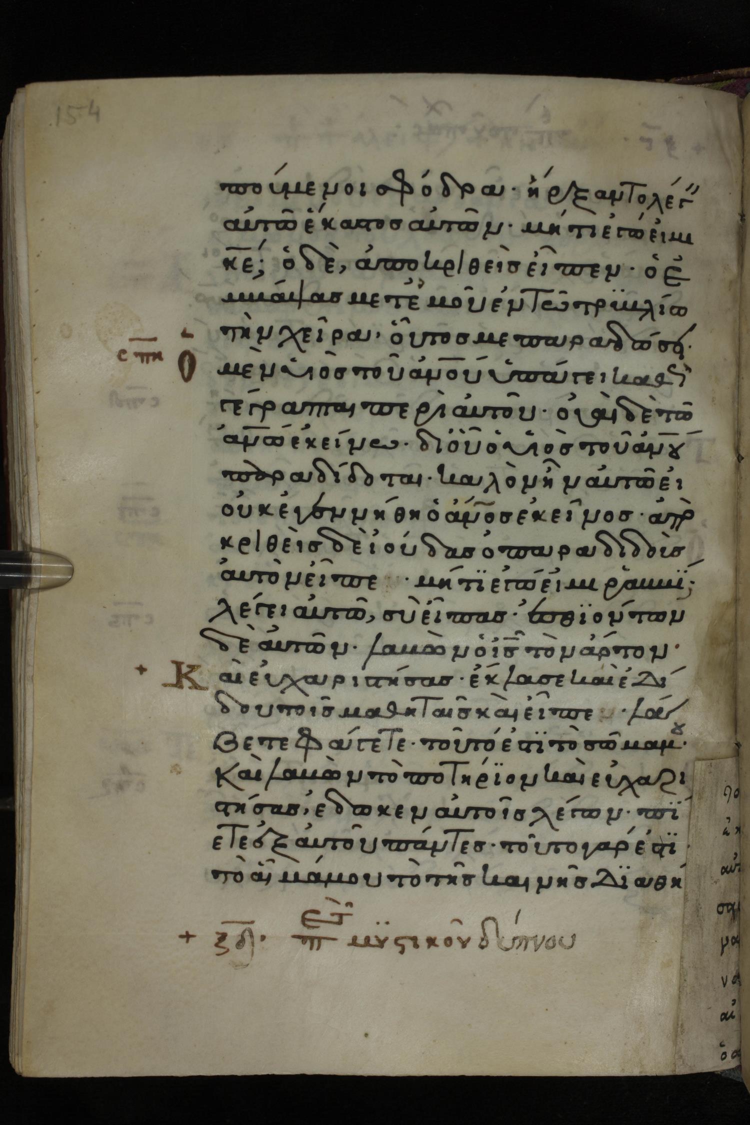 Twelfth century minuscule of the Gospels on parchment; 285 leaves, 1 column, 21-23 lines per column. Images were taken at the National Library of Greece in Athens.