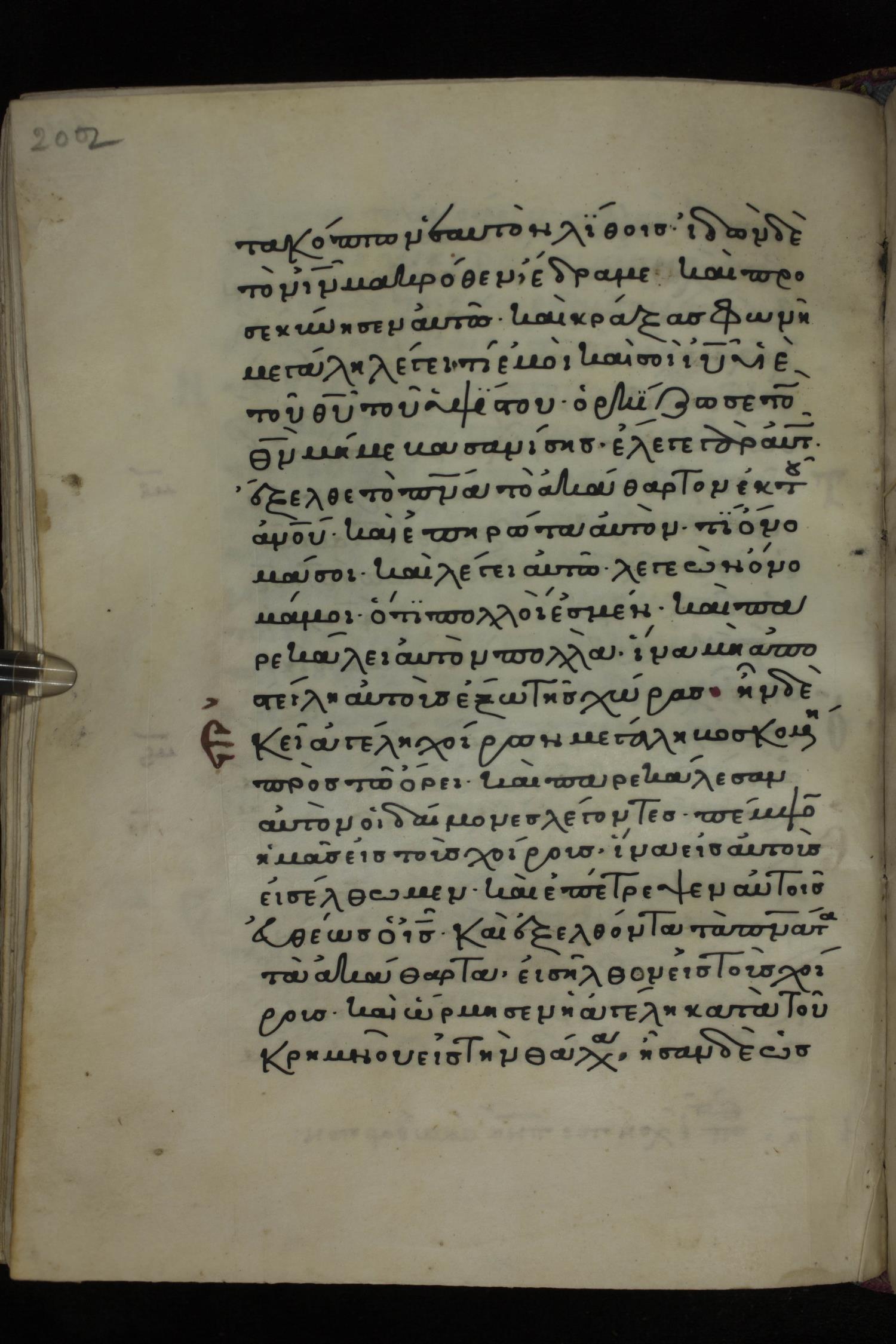 Twelfth century minuscule of the Gospels on parchment; 285 leaves, 1 column, 21-23 lines per column. Images were taken at the National Library of Greece in Athens.