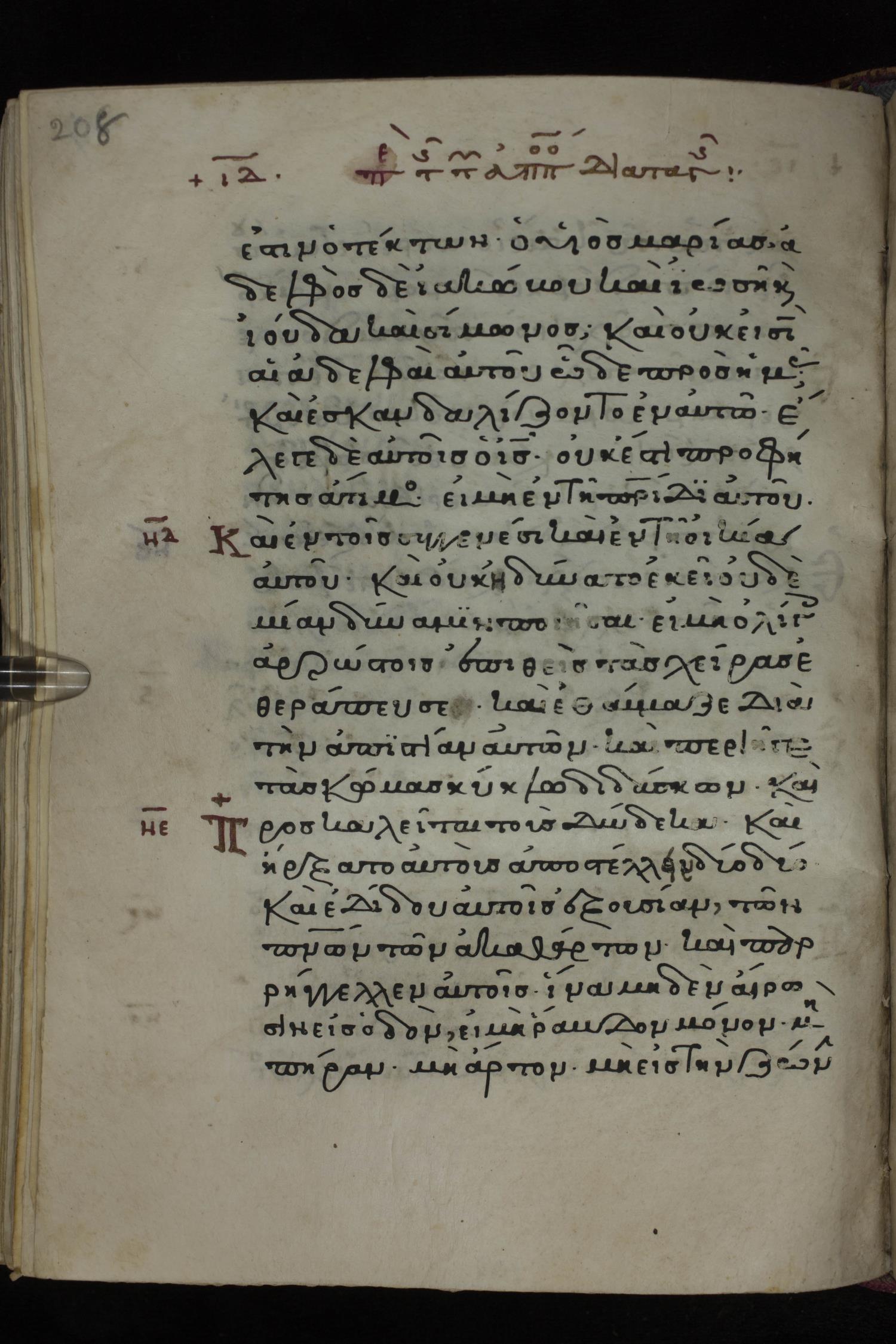 Twelfth century minuscule of the Gospels on parchment; 285 leaves, 1 column, 21-23 lines per column. Images were taken at the National Library of Greece in Athens.