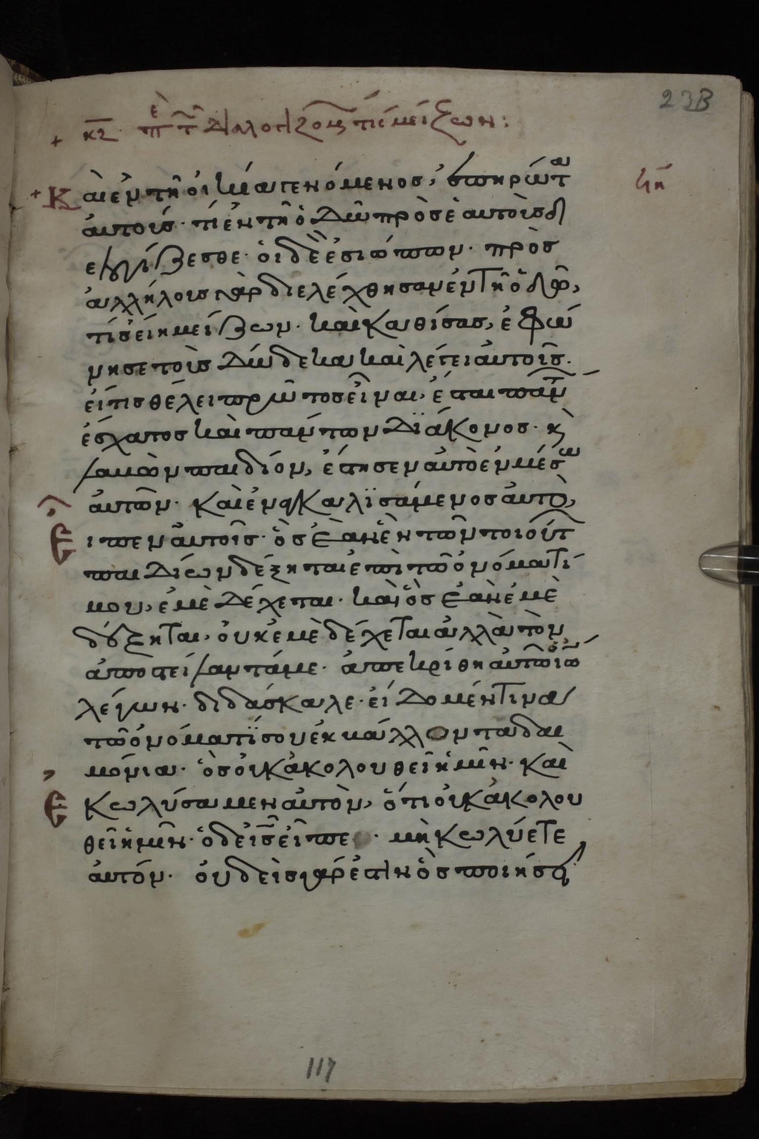 Twelfth century minuscule of the Gospels on parchment; 285 leaves, 1 column, 21-23 lines per column. Images were taken at the National Library of Greece in Athens.