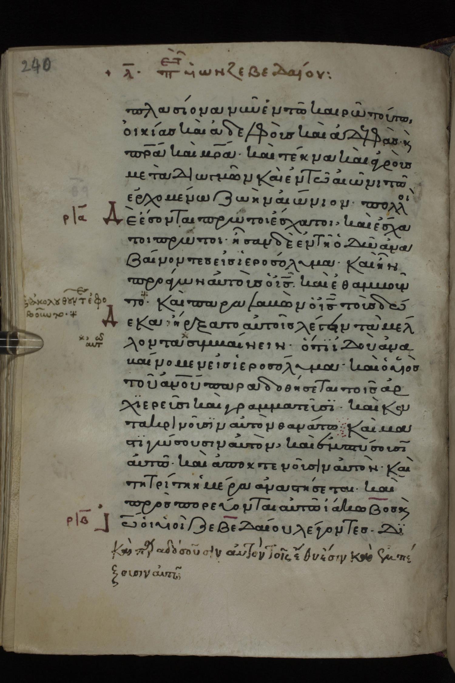 Twelfth century minuscule of the Gospels on parchment; 285 leaves, 1 column, 21-23 lines per column. Images were taken at the National Library of Greece in Athens.