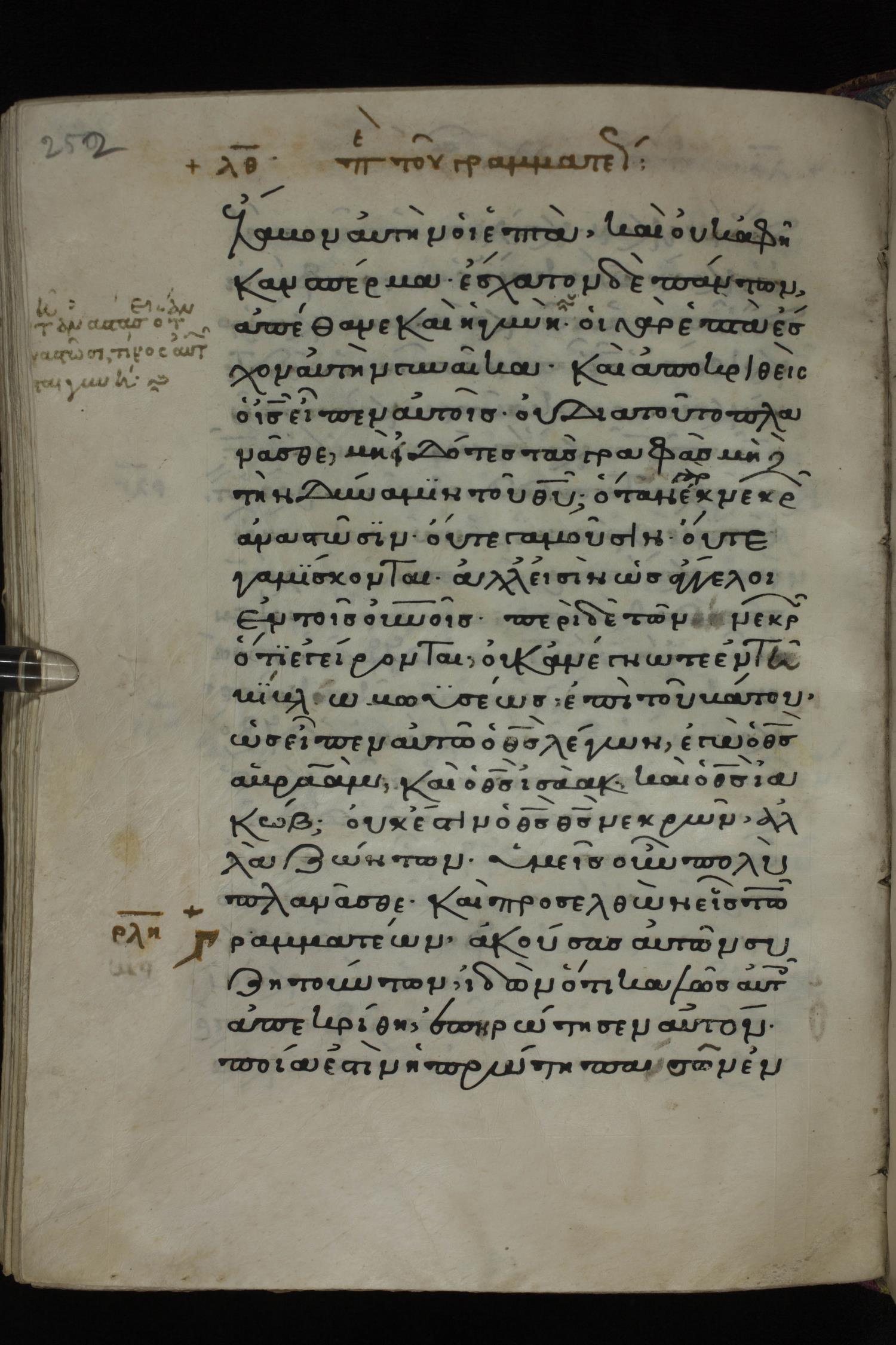Twelfth century minuscule of the Gospels on parchment; 285 leaves, 1 column, 21-23 lines per column. Images were taken at the National Library of Greece in Athens.