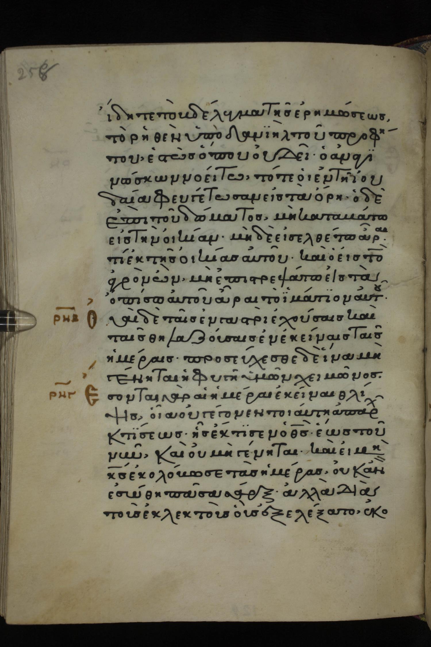 Twelfth century minuscule of the Gospels on parchment; 285 leaves, 1 column, 21-23 lines per column. Images were taken at the National Library of Greece in Athens.